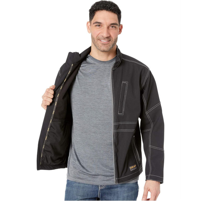 - Jobsite conditions can shift as easily as the weather. Keep the elements and worksite wear-and-tear off your back with the Ariat Rebar Stretch Canvas Softshell Jacket.
