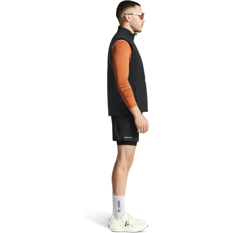 - Elevate your outdoor workouts with the Craft Advance Essence Warm Vest 2. This versatile vest combines padded, wind-protective fabric on the front and upper back with a jersey knit on the sides and back. The design promotes unrestricted movement and comfort, making it an ideal choice for athletes facing chilly weather. Plus, the two zippered side pockets provide a secure spot for your valuables while you stay active. This sleeveless vest is styled with a high collar, a zippered front closure, and a straight hem.