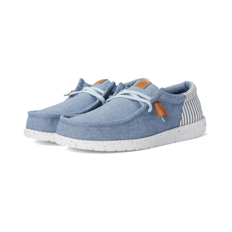 Inspired by classic seersucker fabrics, these Hey Dude Wally Funk Nu Prep sneaker feature a cool, puckered upper and speckled midsole for a touch of retro flair. Added leather details allow for a more sophisticated look, while our classic easy-on system ensures effortless exploration. Designed with you in mind. This Wally shoe boasts the comfort of walking on clouds. Featuring an insole that reduces odors, lightweight outsole, and breathable cotton fabric. The removable memory foam cushioned insole provides maximum comfort and reduces sweating and odors.