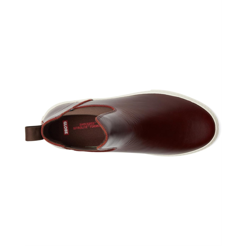 The Globe Dover II slip on booties are made of full grain leather and lined with visa terry cloth with pull on tabs for easy entrance and exit with elastics for a secure fit every time and a well bedded footbed for all day wear.