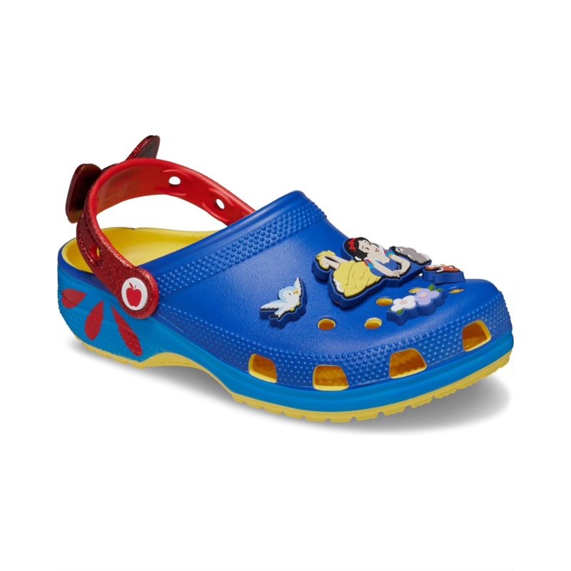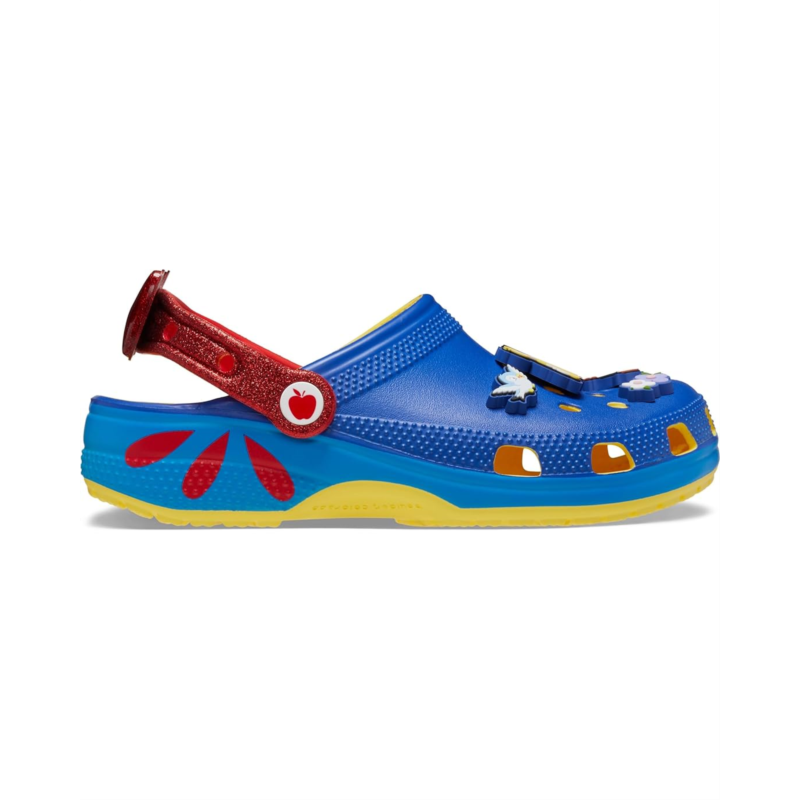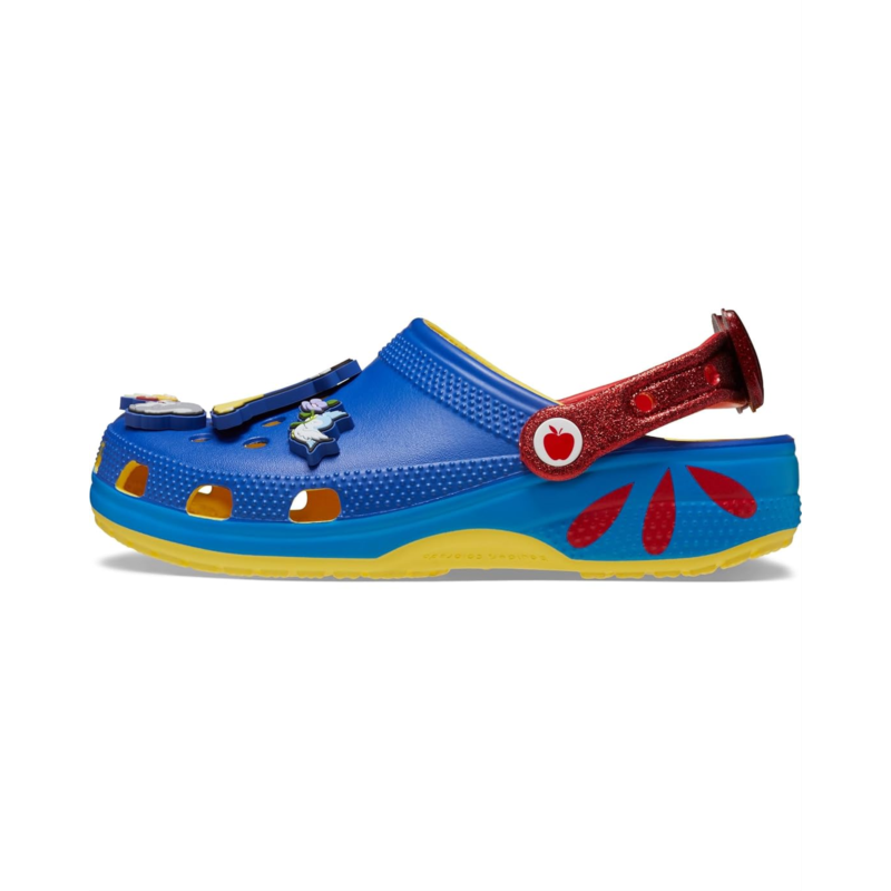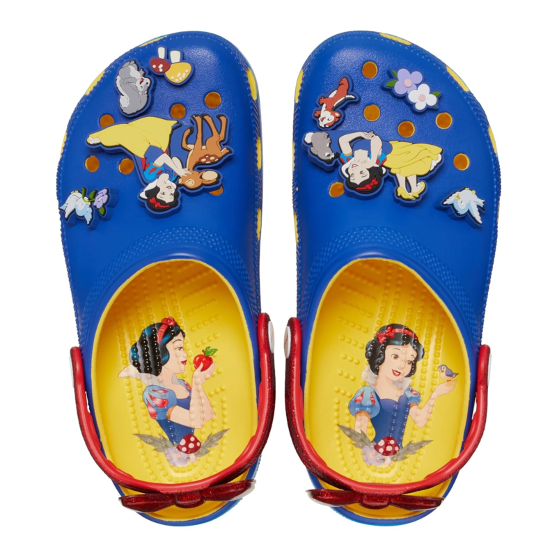 The Crocs Snow White Classic Clog are a versatile pick for all occasions. With updated modernized silhouettes and allover ventilation ports for brethability, the low-top clogs allow improved comfort for all-day comfort.The waterproof clogs are crafted with vegan materials along with a thermoplastic EVA upper beautifully detailed with snow whitemotifs, thermoplastic EVA lining, and a thermoplatic EVA footbed. The slip-on style clogs are easy to wear & remove and come with pivoting heel straps for a more secure fit.