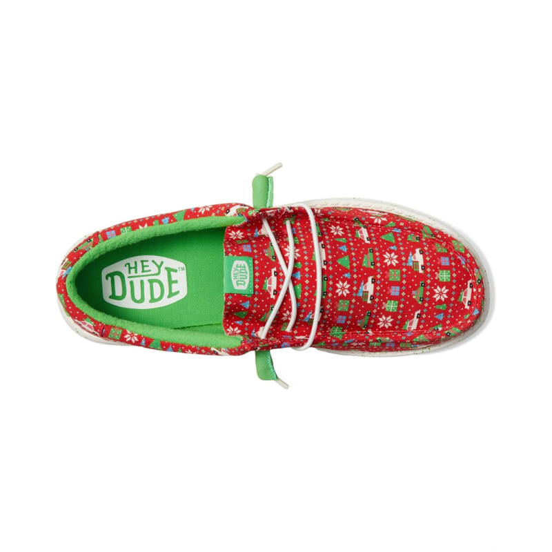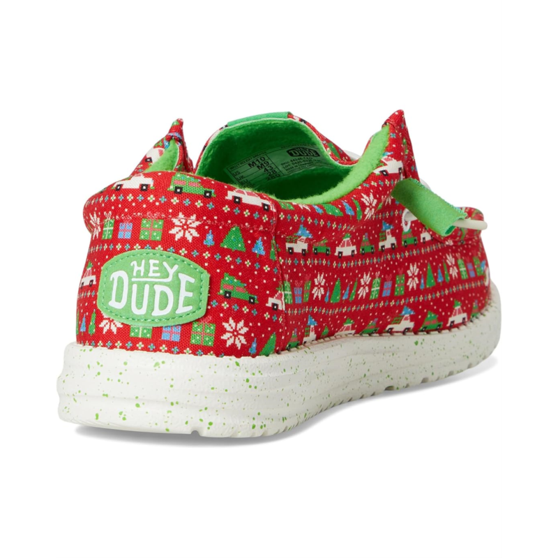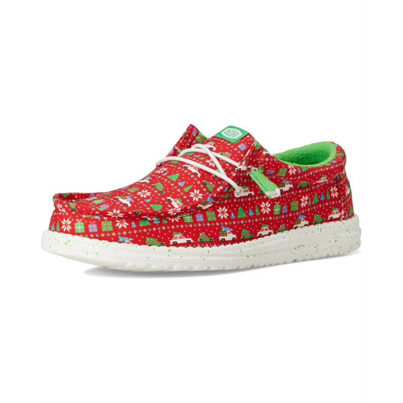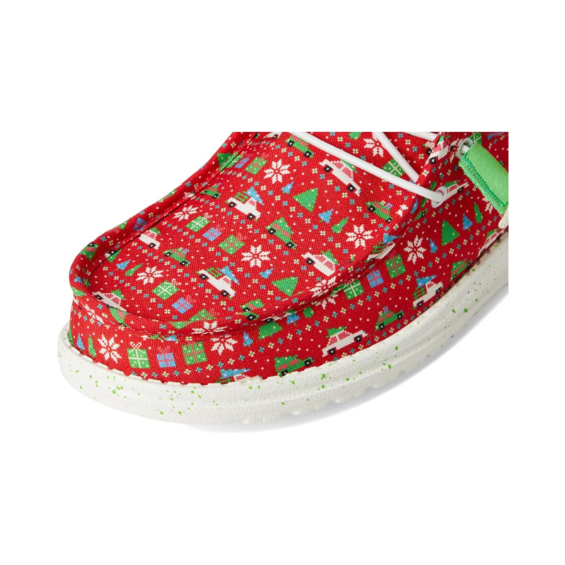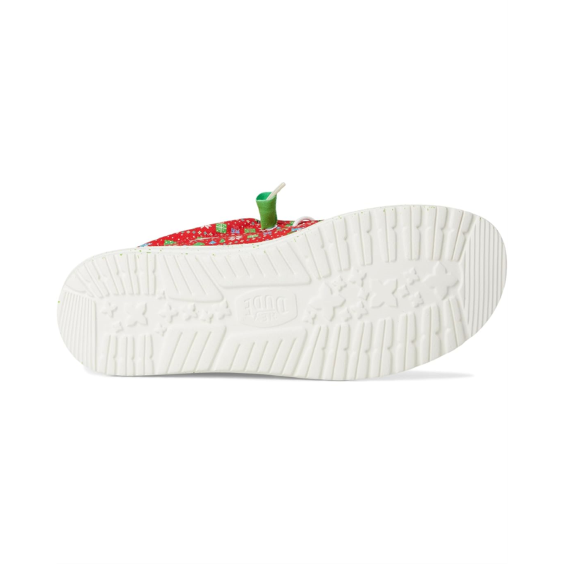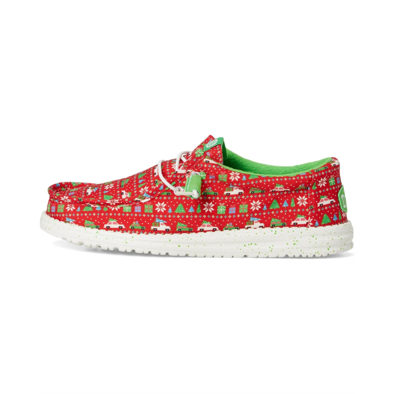Exude the perfect vibes for Christmas wearing the Hey Dude Wally Holiday Sweater Loafers. The slip-on style loafers are crafted with a cotton upper with an allover Christmas upper and elastic laces. The rounded toe design and Flex & Fold supports healthy feet with its unique shape giving complete freedom of movement. Plus, the polyester lining and a removable EVA insole provides go-to comfort.