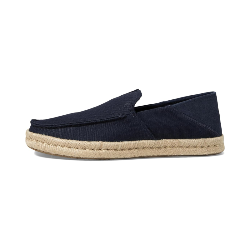 Amp up the fashionable trend wearing the TOMS Alonso Loafers Rope. It is crafted from canvas upper, polyester lining and OrthoLite Eco LT-Hybrid insole for enhanced comfort and breathability. This pair of shoes features round toe, jute-wrapped midsole, suede heel counter and collapsible heel construction for added versatility.