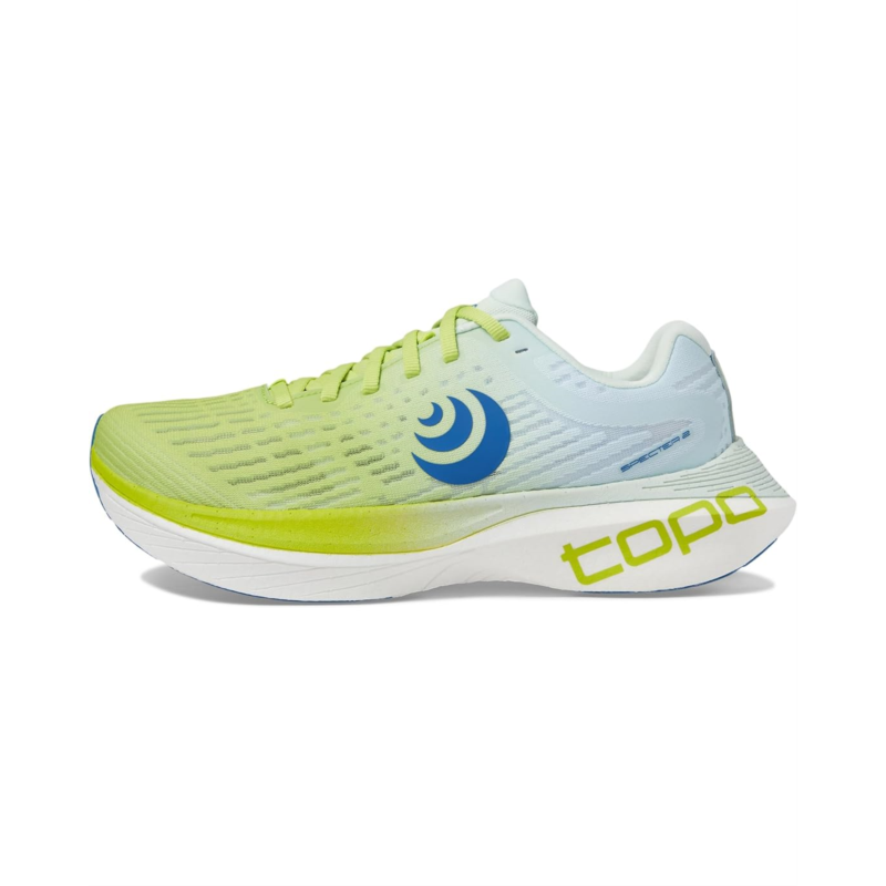 The Topo Athletic Specter 2 shoes are high-performance, max-cushioned trainers designed for up-tempo, long-distance running. These sneakers are crafted with a recycled mesh upper that offers a secure, lightweight fit with optimal breathability. The OrthoLite footbed of these sports shoes provides a soft step-in feel while the polyester lining keeps your feet cool and comfortable. Designed with a lightweight, full Pebax Powered midsole that ensures a fast and responsive ride, these sneakers are comfortable to wear all day. The platform of these lace-up shoes features an additional 2 mm of cushioning for even more comfort.
