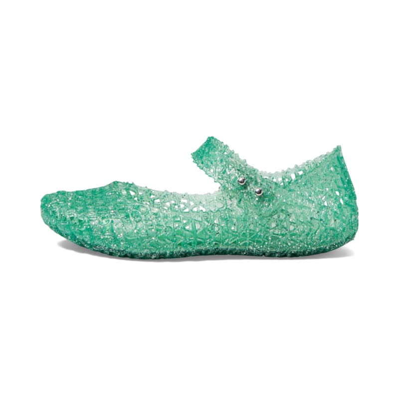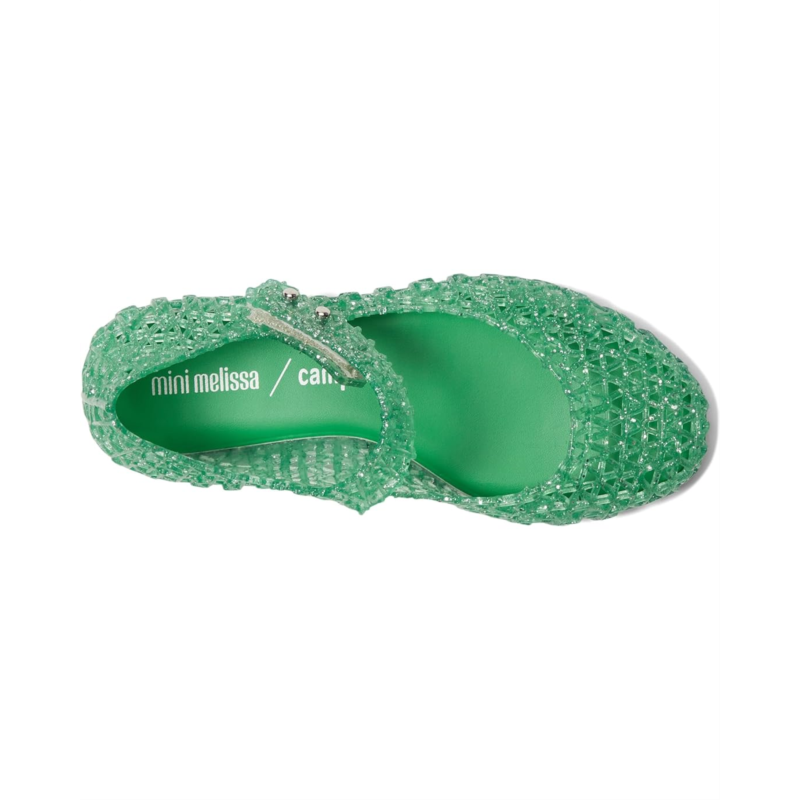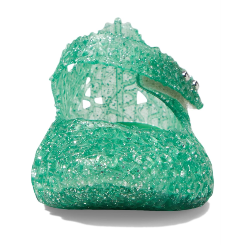 The Mini Melissa Campana Papel BB flats are a sparkly, fruit-scented jelly flat with playful retro charm has a hook-and-loop Mary-Jane strap for easy on and off.
