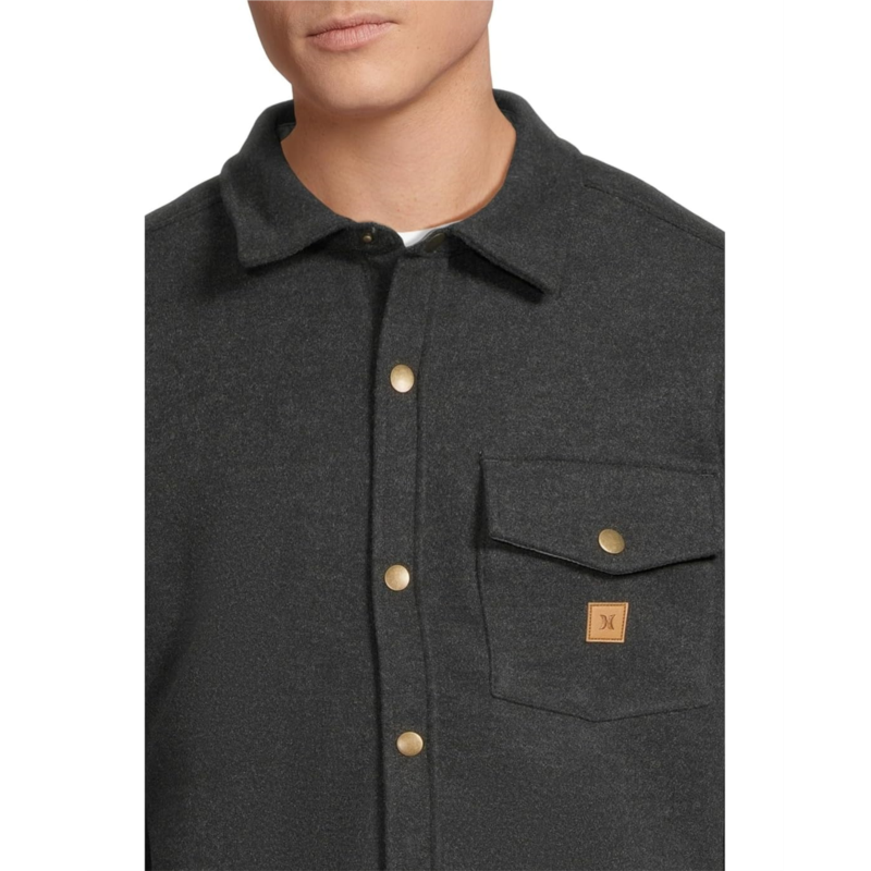 The Hurley Santa Cruz Solid Flannel Long Sleeve shirt delivers warmth with a clean, modern edge. It features a straight hem and pleated back yoke for relaxed mobility and structure. A left chest pocket with snap-flap closure adds utility, while the icon faux leather patch offers subtle branding.