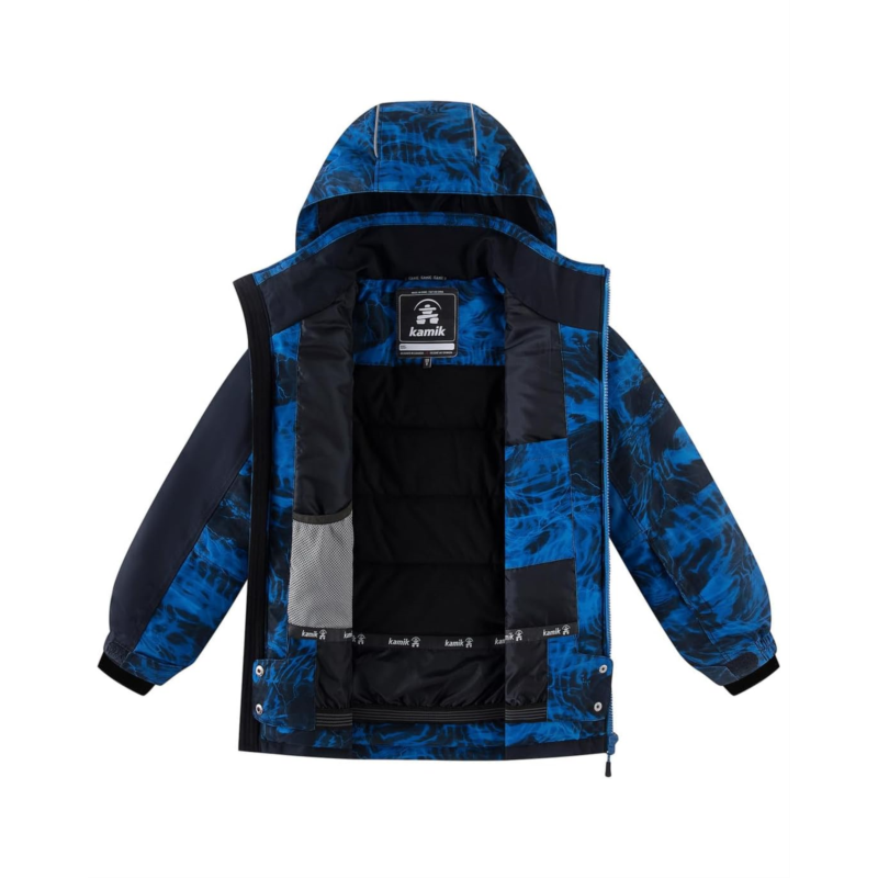 Kamik Kids Cosmos is a waterproof, breathable cold-weather jacket perfect for all outdoor activities. The soft fleece jacket features a detachable fleece-lined hood with rear drawcord adjustment, long sleeves with adjustable touch-fasten cuffs, and a zippered front closure.
