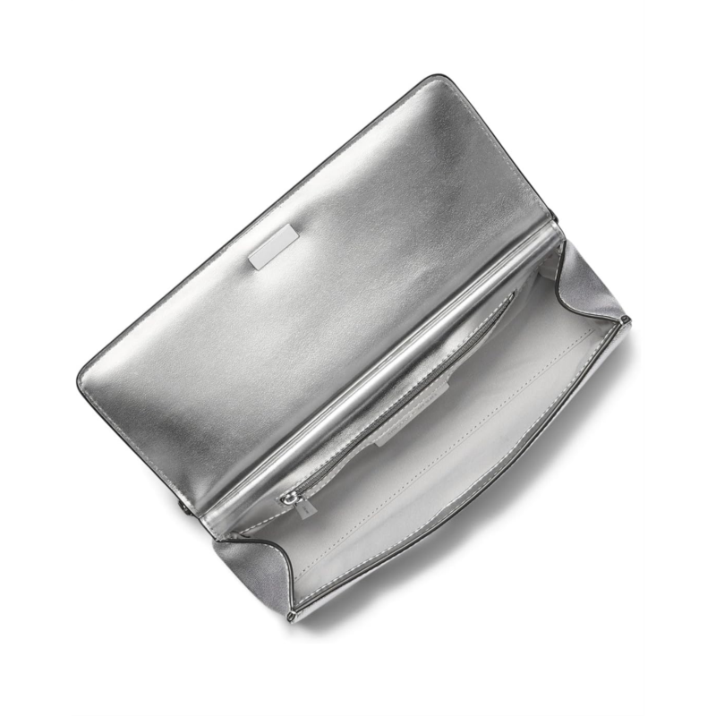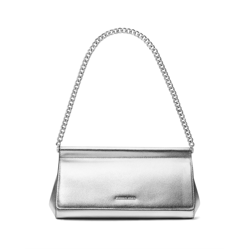 Complement your chic style with the MICHAEL Michael Kors Carmine Medium East West Clutch. Crafted from leather, this clutch offers a magnetic closure with an interior zipper pocket and a detachable chain link strap.