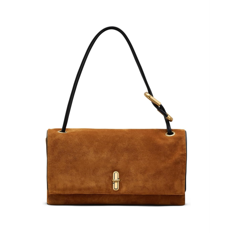 The Marc Jacobs The Suede Large Dual bag is reimagined in a velvety, tactile finish that elevates its minimalist silhouette. It features signature dual hardware and a J Marc turnlock closure. Versatile in wear, it can be styled as a shoulder bag or carried for hand-held sophistication.