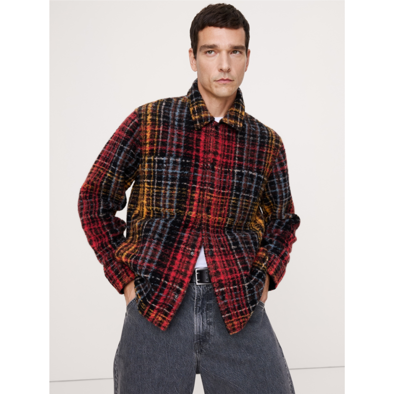 - So soft, so warm, this unique shirt jacket has a plaid pattern with a uniquely textured boucle finish. We left the inside unlined so it''s easy to layer throughout the seasons.