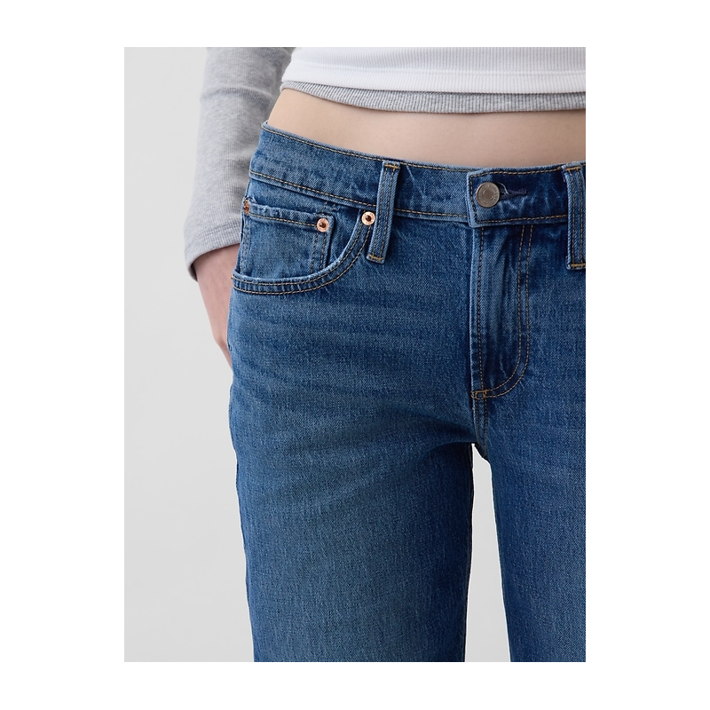- Look: A classic five-pocket jean in a medium indigo wash.