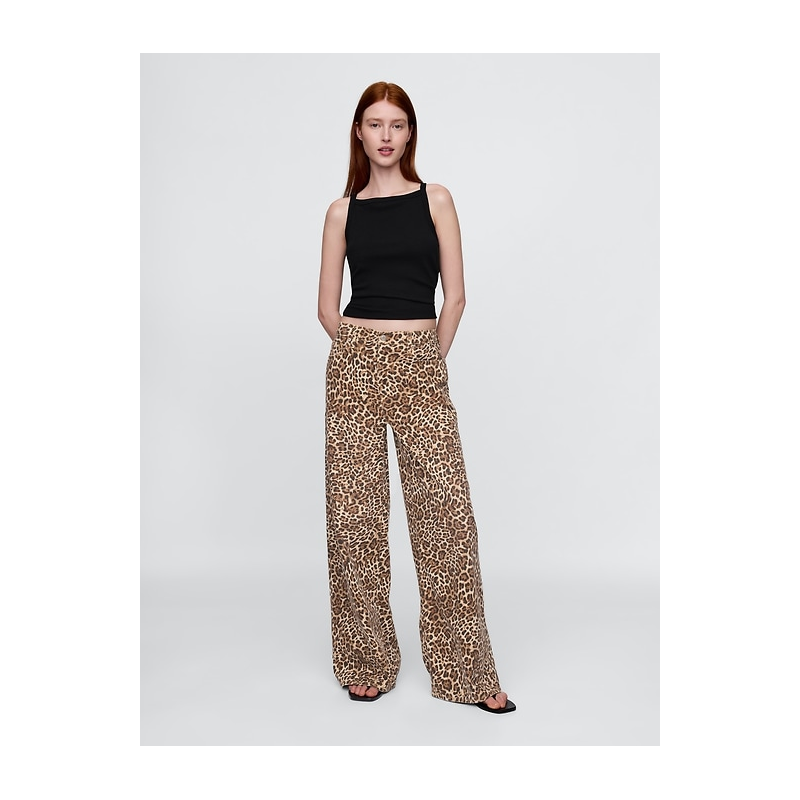 Gap Mid Rise UltraSoft Leopard Baggy Jeans