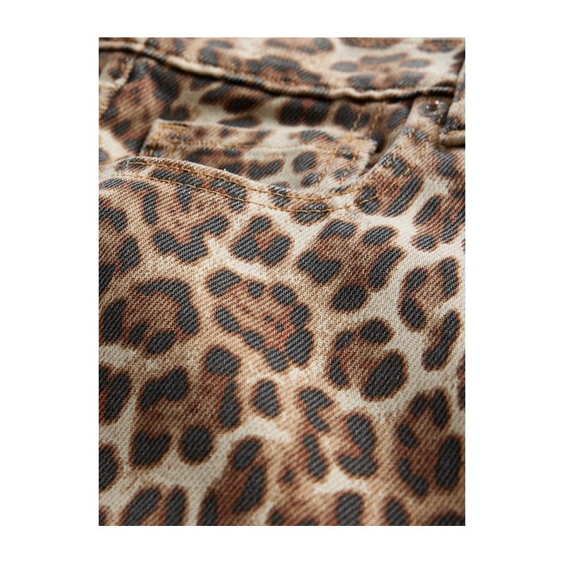 -Look:A five-pocket baggy jean with an allover leopard print.