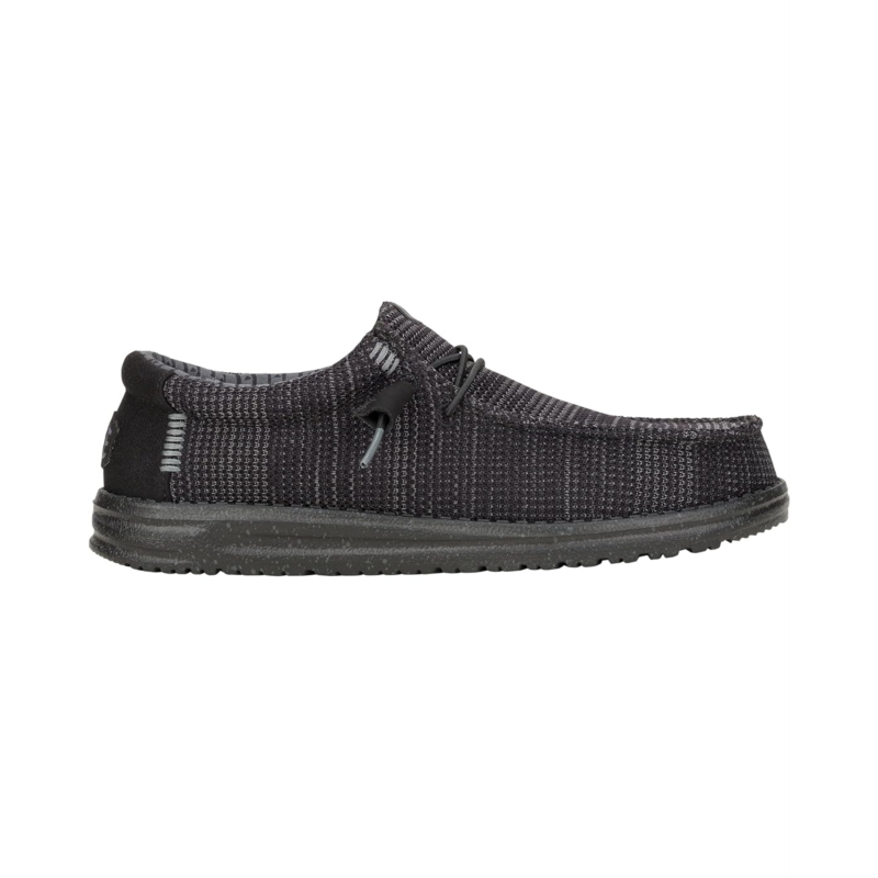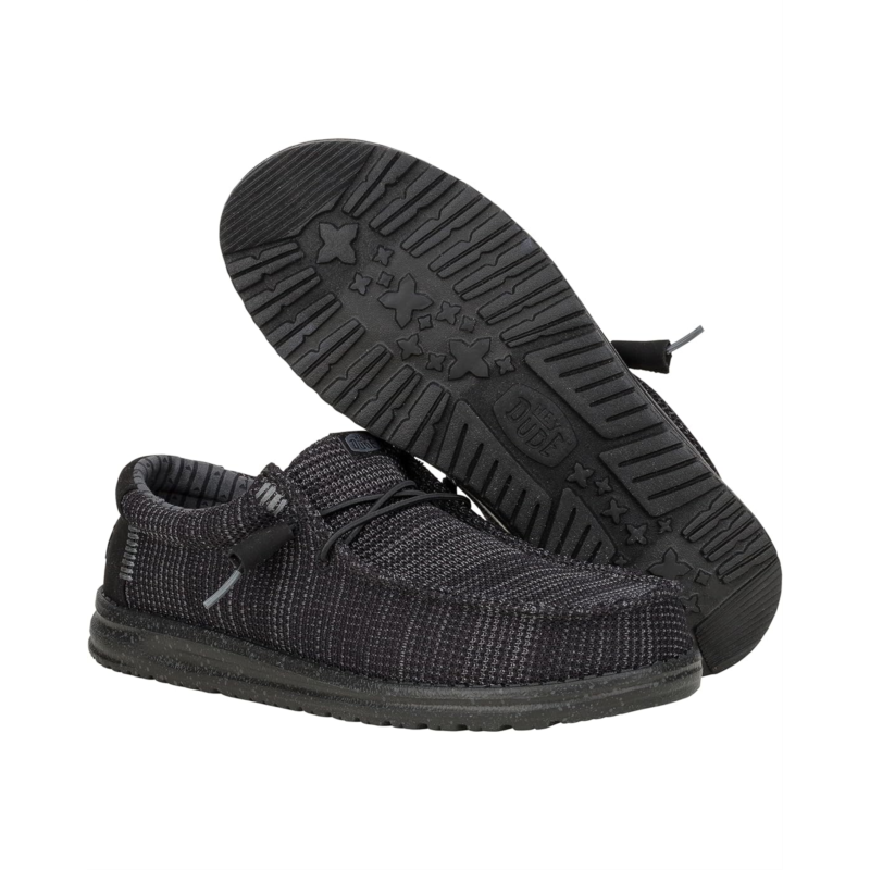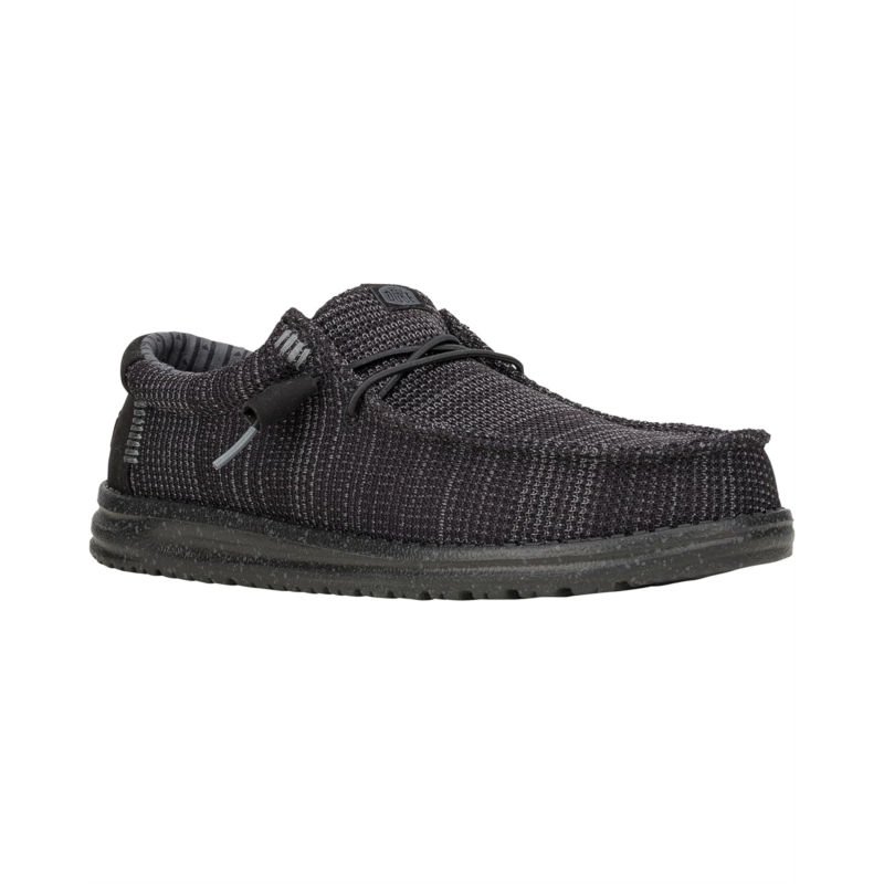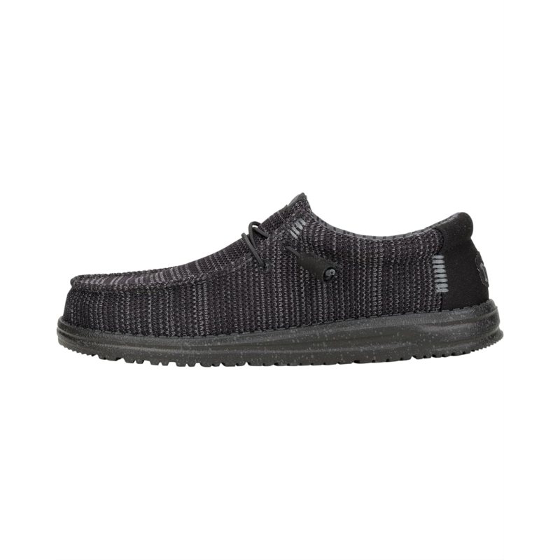 - Easy, Breezy, Textile Makes This Slip-On Hey Dude Wally Stretch Sox ready to roam. The easy-on elastic laces, and removable insole provides go-to comfort. The sneakers are designed with a canvas upper with rounded toe design and flex & fold design that supports healthy feet with its unique shape giving complete freedom of movement. It is specially manufactured using an elastic material that allows them to flex with the foot, resulting in a shoe that fits more uniformly.