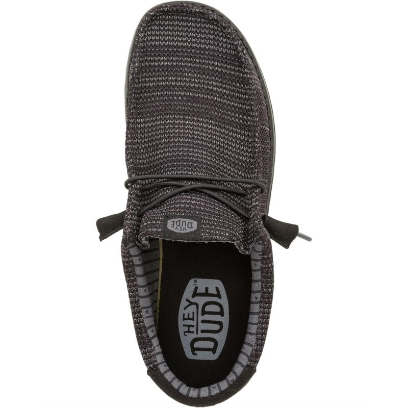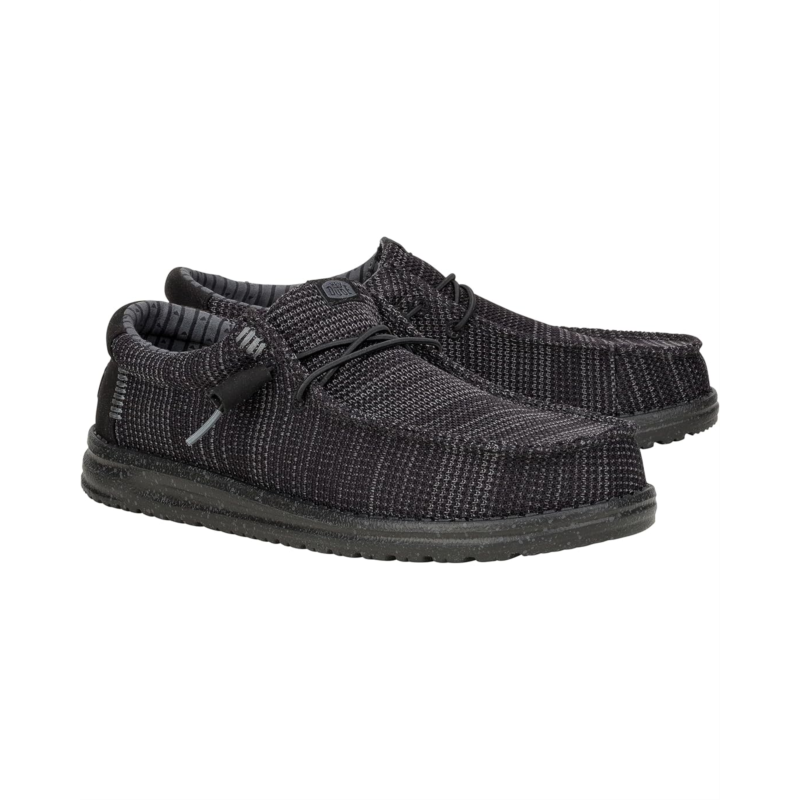 - Designed with a canvas upper with easy-on elastic laces, the Hey Dude Wally Stretch Sox shoes provide the comfort of walking on clouds. The Flex & Fold design of these loafers supports healthy feet while the removable memory foam cushioned insole offers all-day comfort. These casual loafers feature a breathable cotton lining that keeps your feet cool and comfortable. Machine washable and lightweight, these loafer shoes are great for travel and will become your all-time favorite.