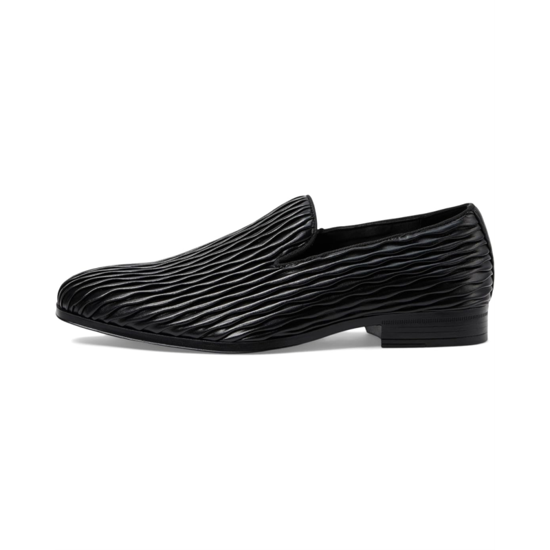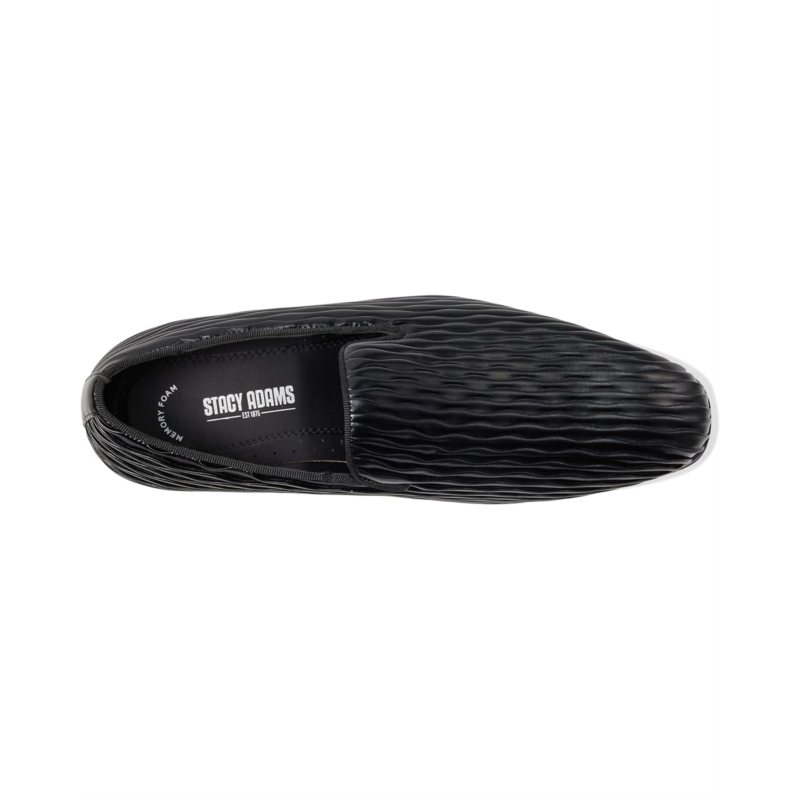 - Classic design, modern comfort in the Stacy Adams Seismith Slip-On! Featuring a sleek textile and synthetic upper, this shoe promises style and durability. Enjoy the ultimate comfort with a fully cushioned insole, Memory Foam, and a leather footbed cover, ensuring all-day ease. The satin fabric linings add a touch of luxury, while the lightweight, durable synthetic rubber outsole makes it perfect for everyday wear. Slip-on convenience means youre ready to go in no time.