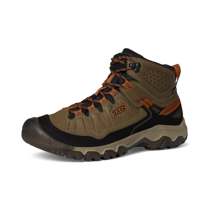 - Conquer every trail, rain or shine! The KEEN Targhee IV Waterproof Hiking Boots is your go-to for rugged adventures, offering out-of-the-box comfort and lasting durability. Crafted with a premium leather upper and direct-attach construction, these boots seamlessly fuse the upper and outsole for long-lasting performance. The KEEN.DRY waterproof membrane keeps feet dry, while the mesh and polyester lining ensure breathability on any trek. A resilient cushioned midsole and all-terrain rubber outsole provide superior traction, stability, and shock absorption. Designed with KEENs signature wide fit, a secure lace-up closure, and a protective bump toe, these ankle-high boots are built for years of exploration.