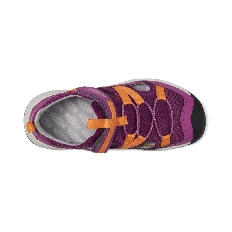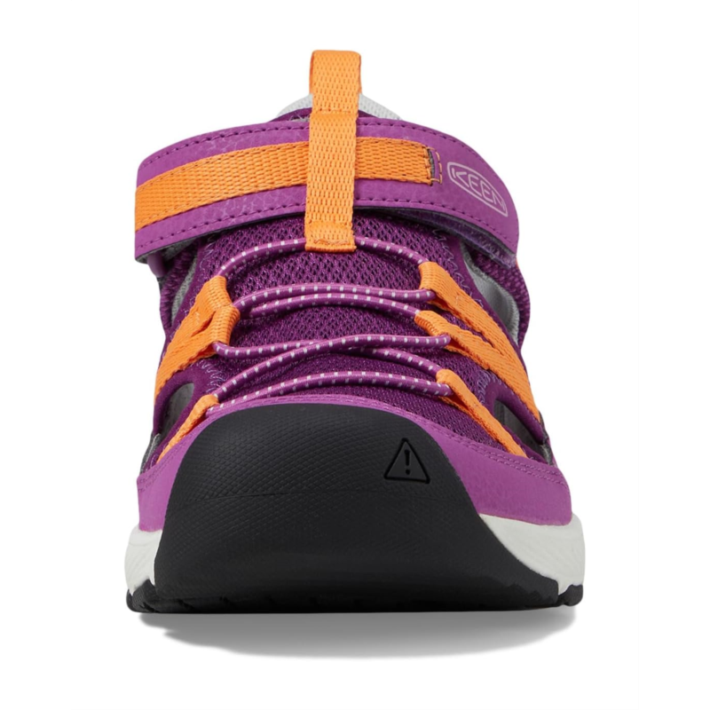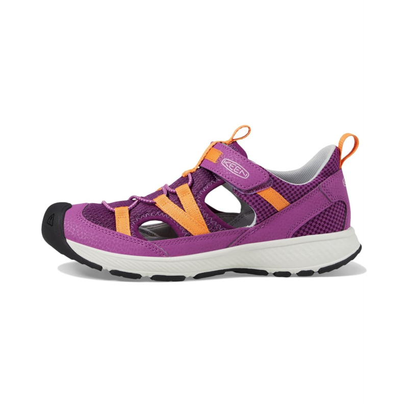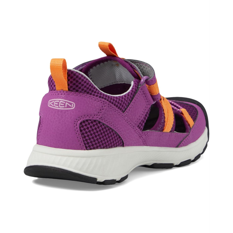 - Step up in style by wearing the KEEN Kids Motozoa Sandal. The slip-on footwear has hook-and-loop closure with a front round toe design and ankle and tongue pull-on tab for easy wear. The cut-out silhouette makes it breathable and easy to wear all day long. The textile upper with breathable mesh lining and removable polyurethane insole with arch support offers long-lasting comfort.