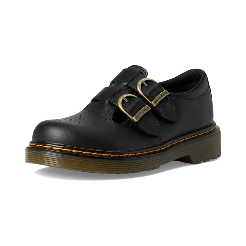 - The Dr. Marten''s Kid''s Collection 8065 J shoes are a dazzling reimagining of the classic Mary Jane silhouette, designed to stand out. Crafted from glossy patent leather upper, they''re easy to clean and built for playground-ready durability. The dual horseshoe buckles are secured with adjustable rip-tape straps, making them simple for kids to slip on and off independently. Details like the perforated brogue design across the toe, internal padded collar, and extra-flexible cemented sole with stitching add both comfort and signature Dr. Martens flair.