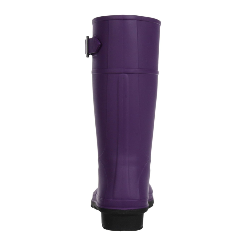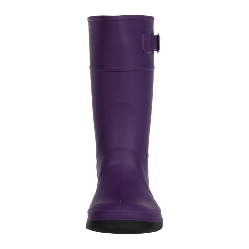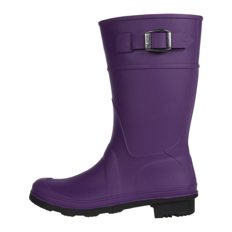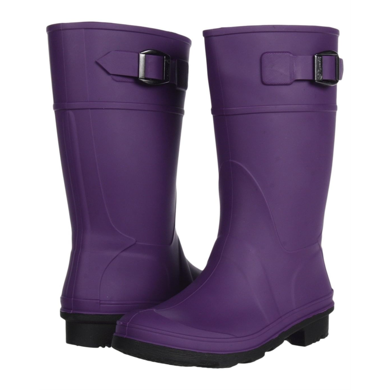 - Mid-calf rainboots are designed with a rounded-toe, side-buckle detail, moisture-wicking lining, and a padded synthetic footbed. A gripped rubber outsole provides traction for wet surfaces.
