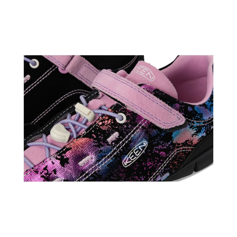 - Reward your kiddos ever-wandering feet with the KEEN Kids Jasper II shoes. Their removable, cushioning cork footbed conforms to your kids foots natural shape, so you can rest easy knowing the fit is just right. The efficient design is easy to pack for comfy after-sport kids shoes that will have little feet rejoicing after a long day of play. These hiking shoes are made of a premium, environmentally preferred suede upper with a breathable leather lining that keeps your feet cool and comfortable all day long. They are made of a rubber insole and rubber toe bumper that help protect your kids feet from the slips and stumbles that come with open play. Made with a wide adjustable hook-and-loop strap and a lace lock bungee system to help them gear up and get out the door fast, these sneakers are built off KEENs traditional wider footwear form. Gently brush them with a soft bristle brush or hand towel to remove loose dirt and debris, while stains can be treated by lightly rubbing a gum eraser in a circular motion over the location and lightly brushing afterward. These lace-up shoes are perfect for kids who love to get outside and play.