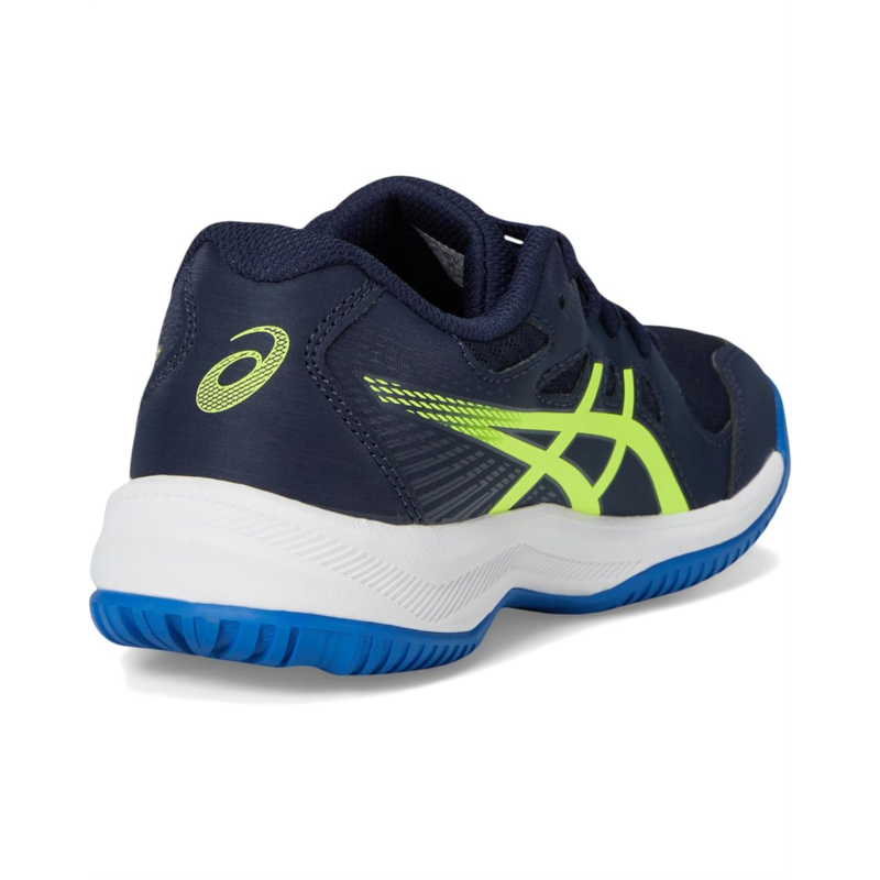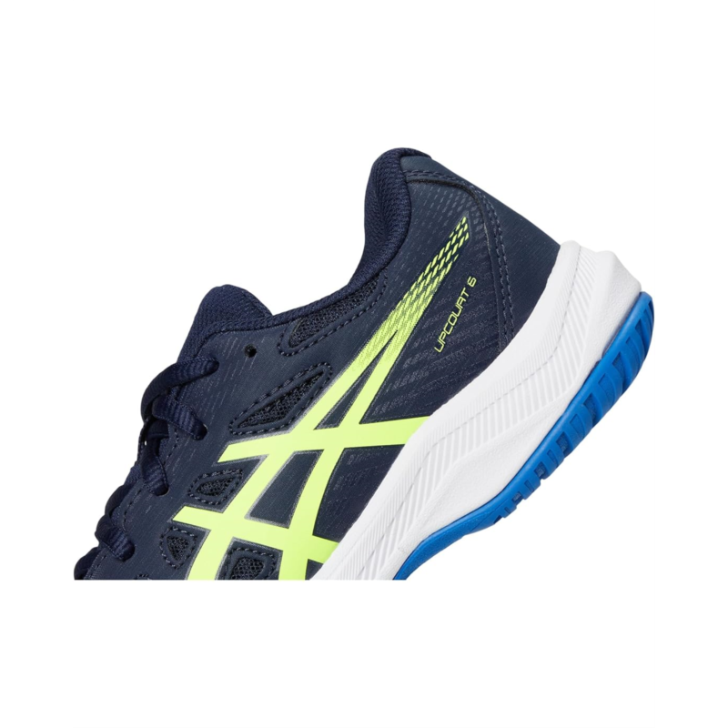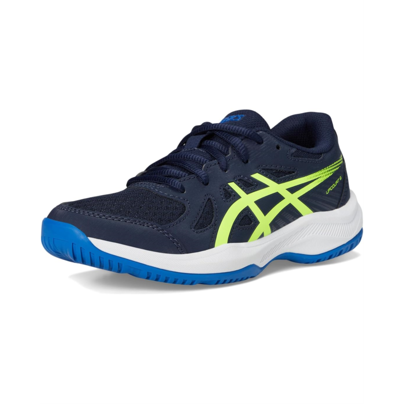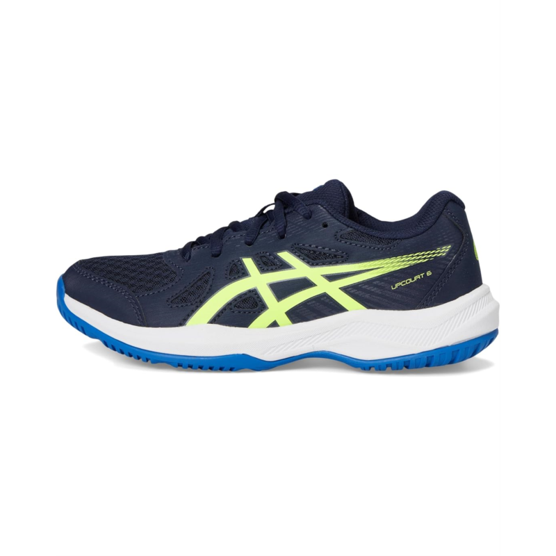 - The ASICS Kids Upcourt 6 GS shoe is designed to offer better flexibility and a more comfortable fit. It features a polyester upper, polyester lining, cushioned ethylene vinyl acetate insole, and a broader section of mesh paneling that helps create a soft and adaptable feel. Meanwhile, its supportive midfoot overlays offer better stability during multi-directional movements and the GEL technology cushioning provides excellent shock absorption. The toe and heel counter are reinforced with durable panels that help the shoes last longer. The kids-specific construction helps create a more precise fit and the shoes are designed with traditional laces so that little ones can easily tie their shoes.