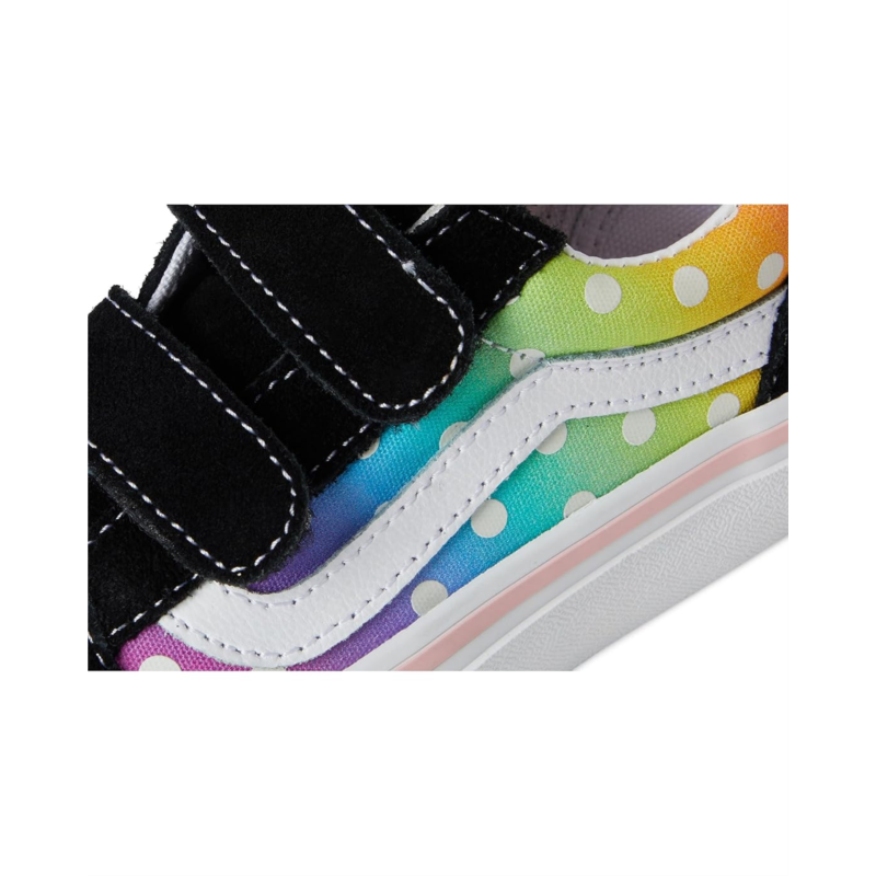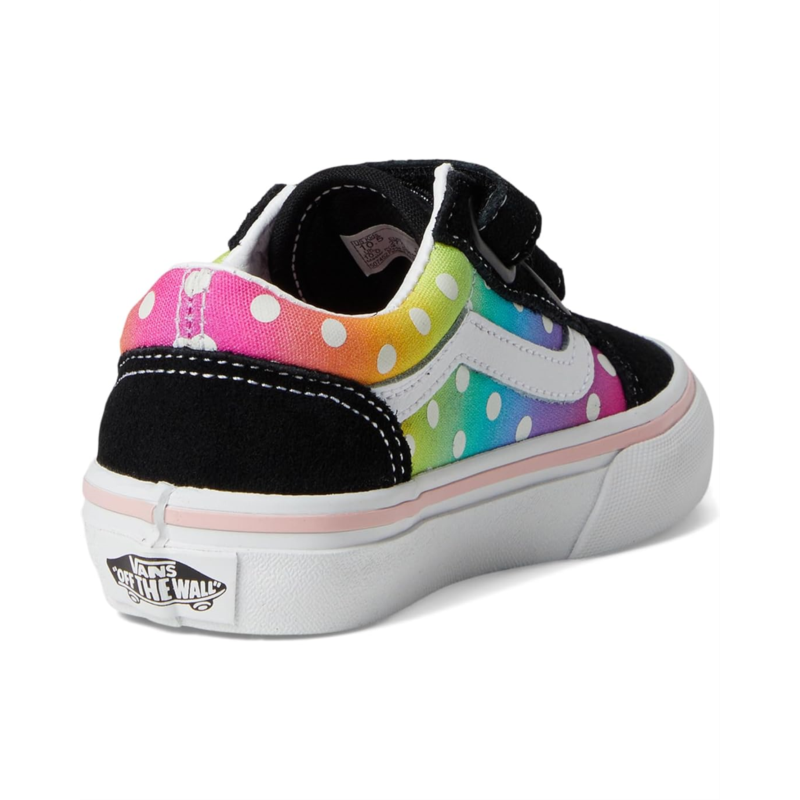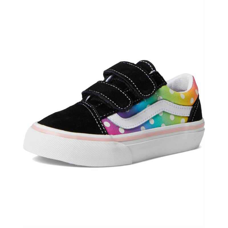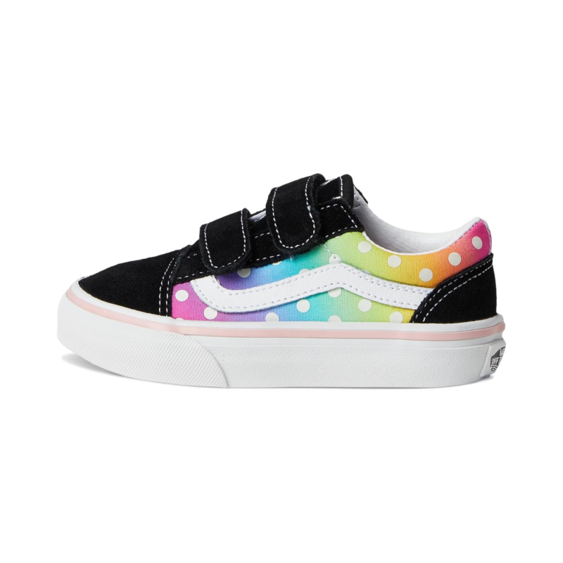 - These Vans Kids Old Skool V shoes are made for little ones who love to play and explore. The durable suede and canvas upper will keep up with all their adventures, while the cotton lining and rubber insole ensure comfort. With the iconic low-top silhouette and Sidestripe shoe design, these sneakers are a stylish addition to any kids wardrobe.