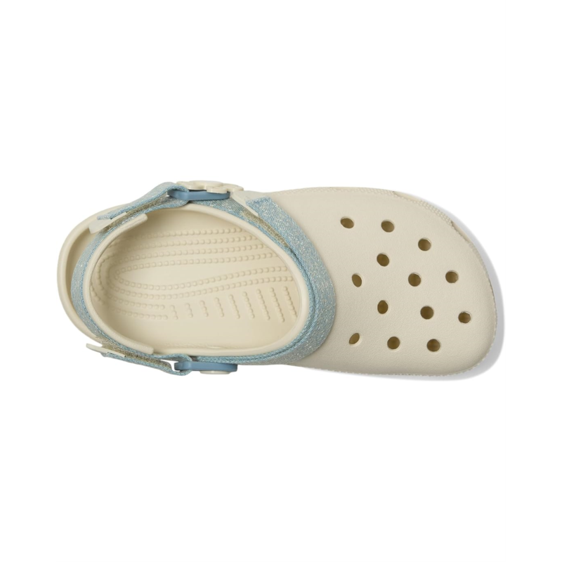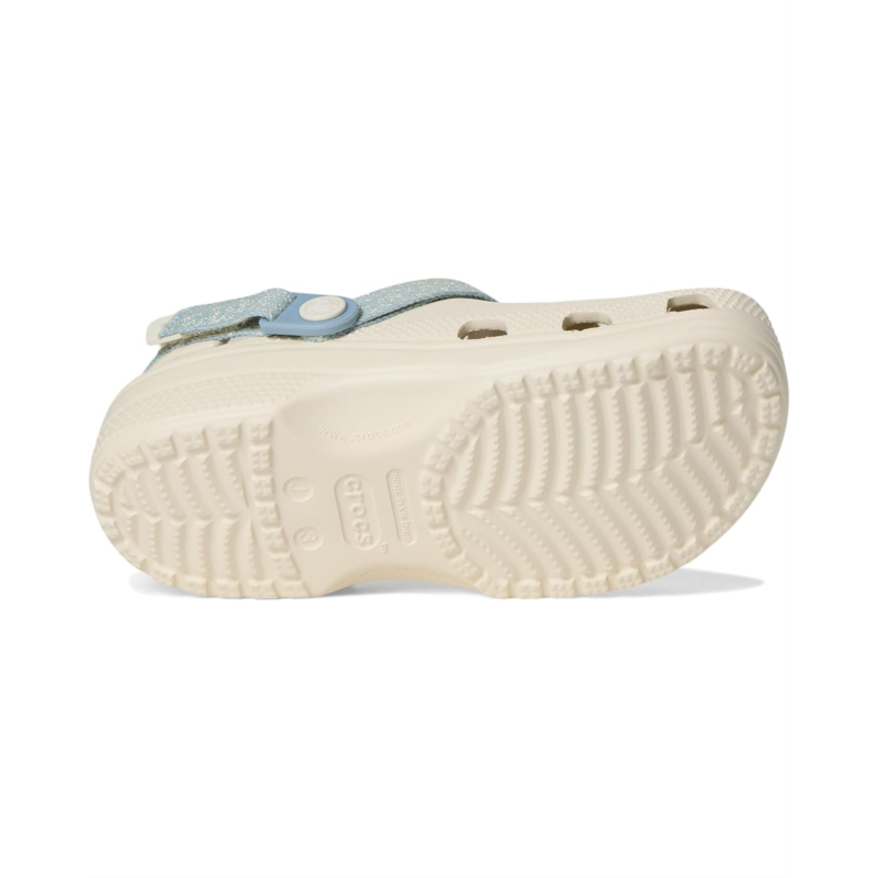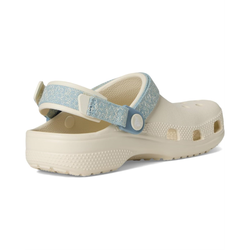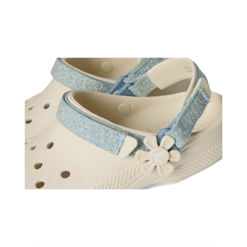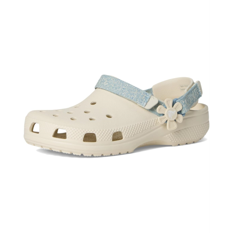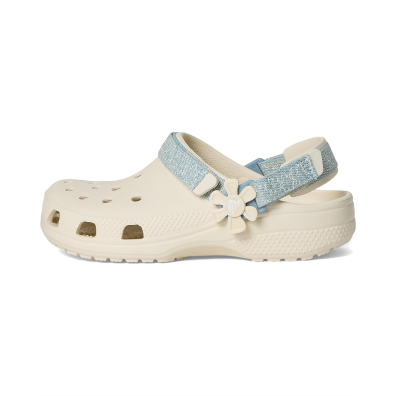- Easy on, easy off! just like the adult classic, the Crocs Kids Classic Denim Floral Backstrap Clogs offers amazing comfort and support, thanks to the light, durable CROSLITE material and design. Kids can customize their crocs clog however they like. The ventilation holes accommodate Jibbitz brand charms.