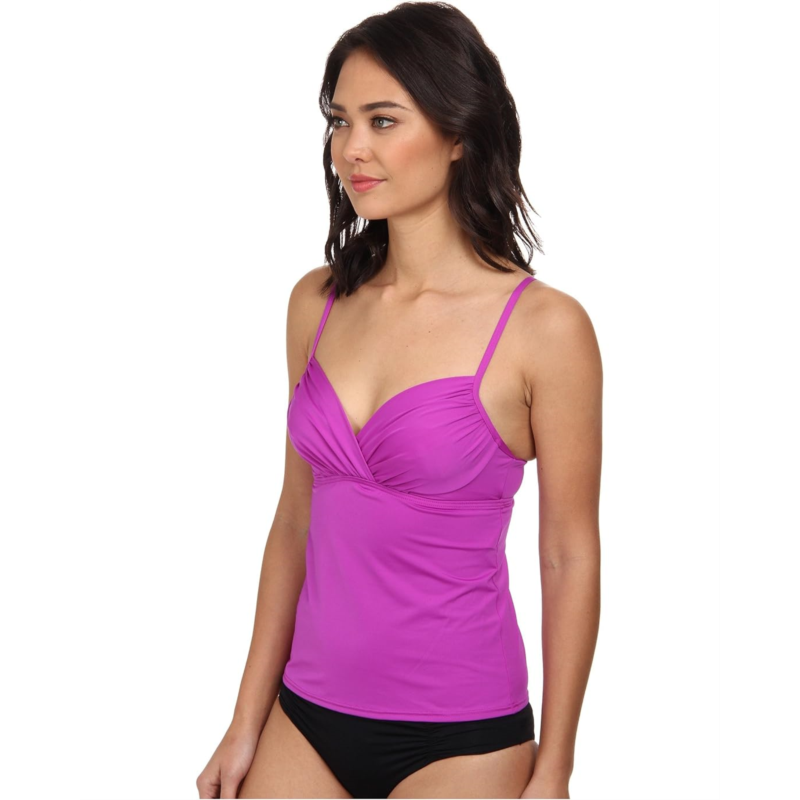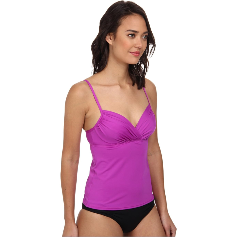 Badgley Mischka Solid Shirred Underwire Tankini Top
