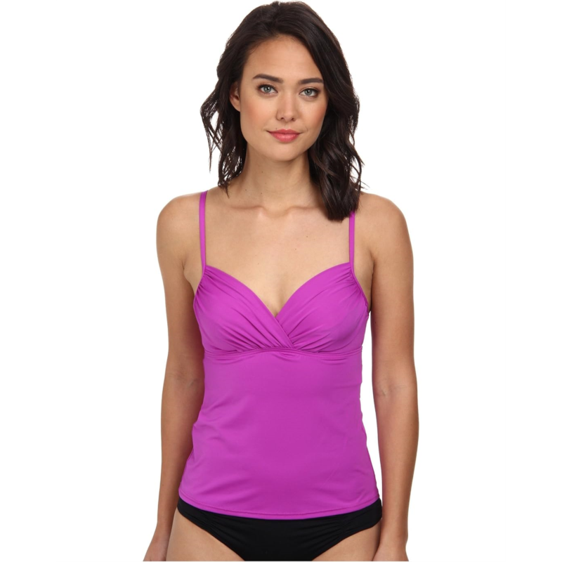 [US] Badgley Mischka Solid Shirred Underwire Tankini Top