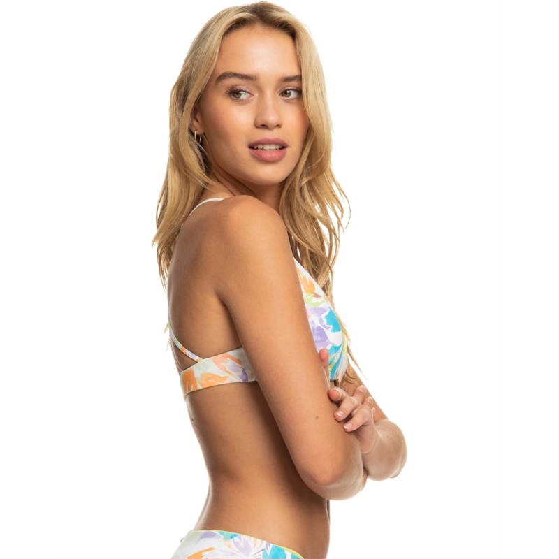 Stay swim ready sporting this floral print Roxy Retro Reversible Athletic Tri Bikini Top while enjoying the beach life.