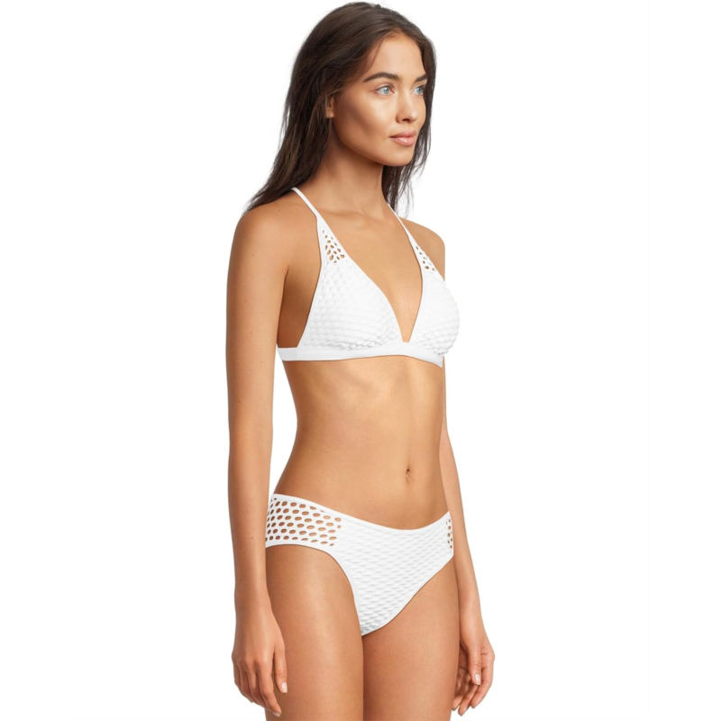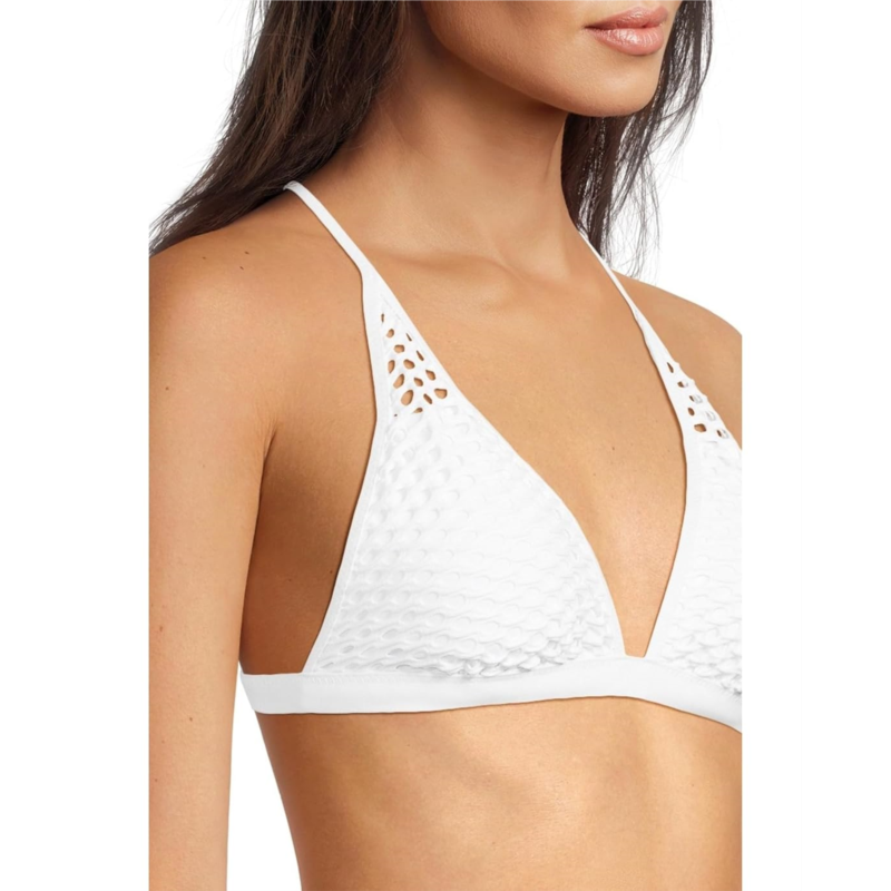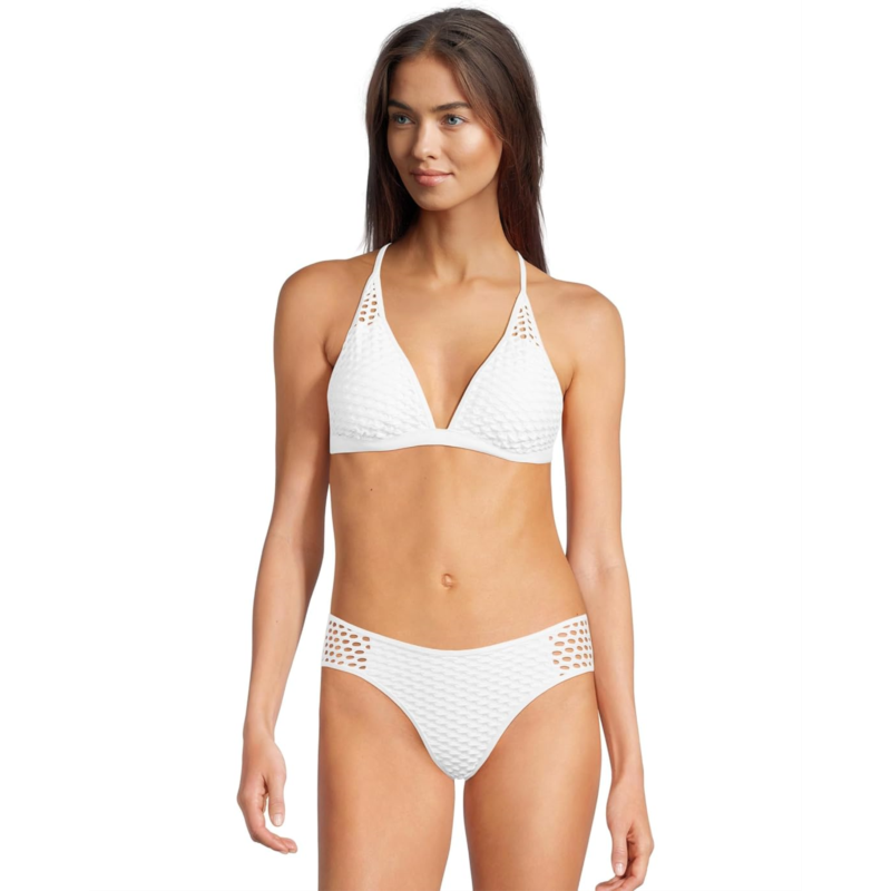 With its layered ottoman fishnet texture with peek-a-boo at the top, the BECCA Castaway Luna Textured Halter Top adds a stunning statement to your beach look. The standard-fit top features a wide band underbust for support, cross-back straps with a tie-up closure, and bi ding along the edges.