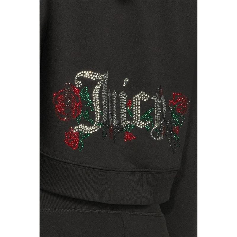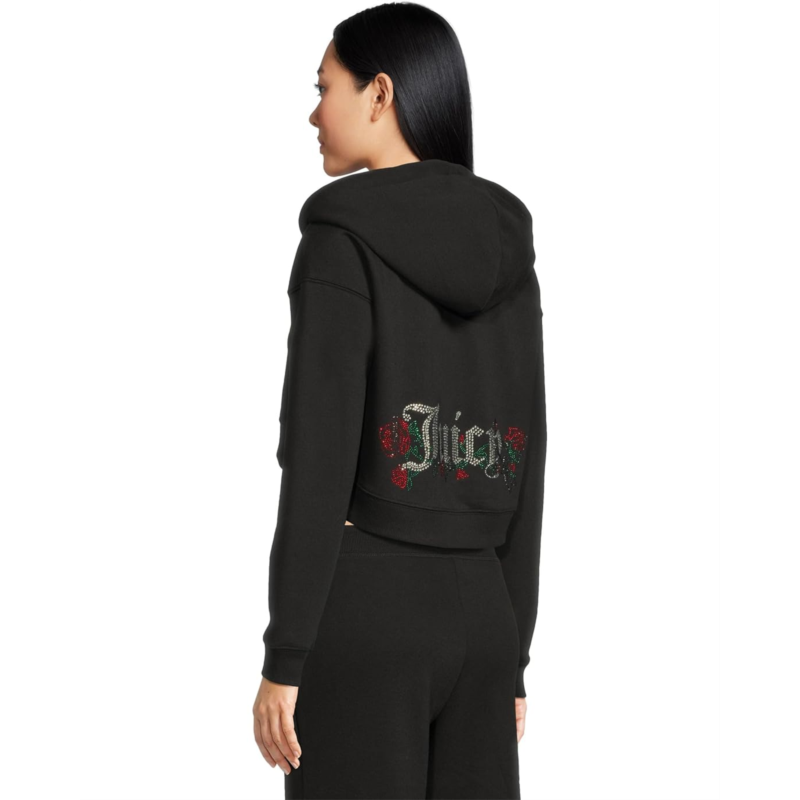 The Juicy Couture Cropped Zip Front Hoodie blends cozy comfort with signature glam, making it a standout piece for off-duty style. Crafted from soft fabric, it features a relaxed cropped fit with a zip-front closure and hooded design. A rhinestone graphic at the back hem adds that unmistakable Juicy sparkle.