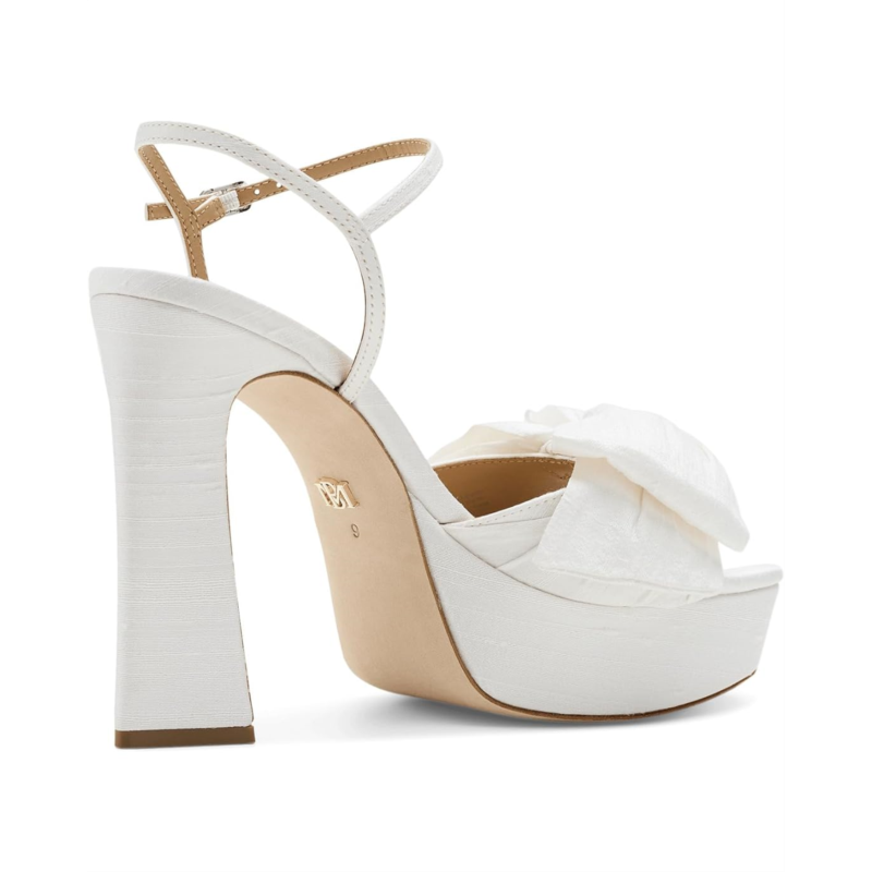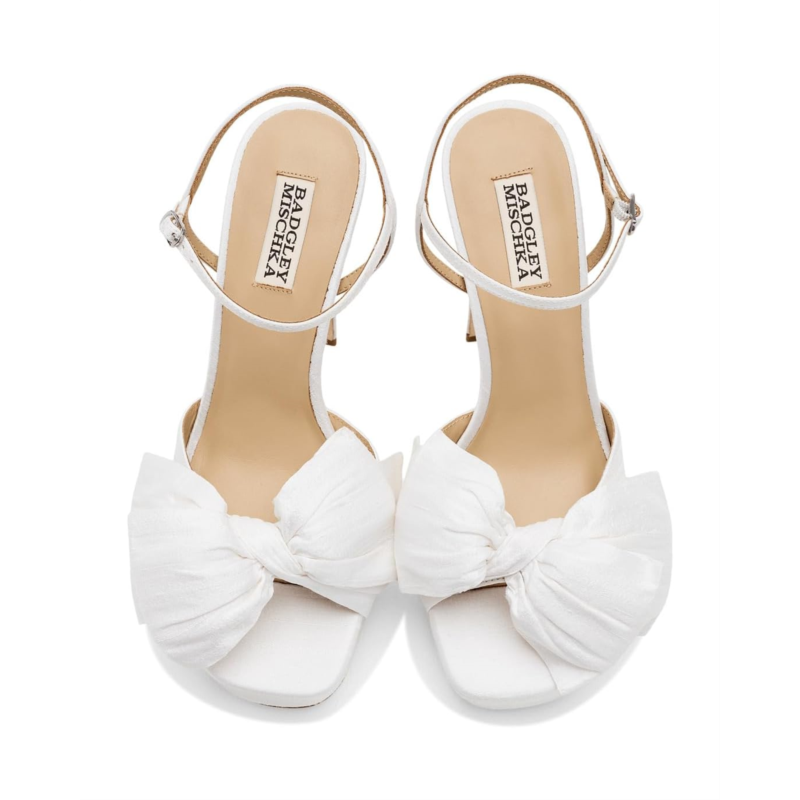 - The Badgley Mischka Oliva is a statement-making heel that blends glamor with comfort. Designed with an open square toe and oversized bow accent, it brings sophistication to any ensemble. The architectural block heel paired with a supportive platform offers stability and ease. Crafted with a silk upper and leather outsole, the Oliva delivers a luxurious finish, while the buckle adjustable ankle strap closure ensures a secure fit.