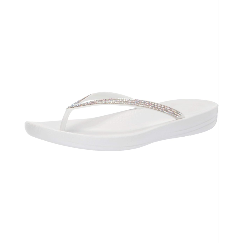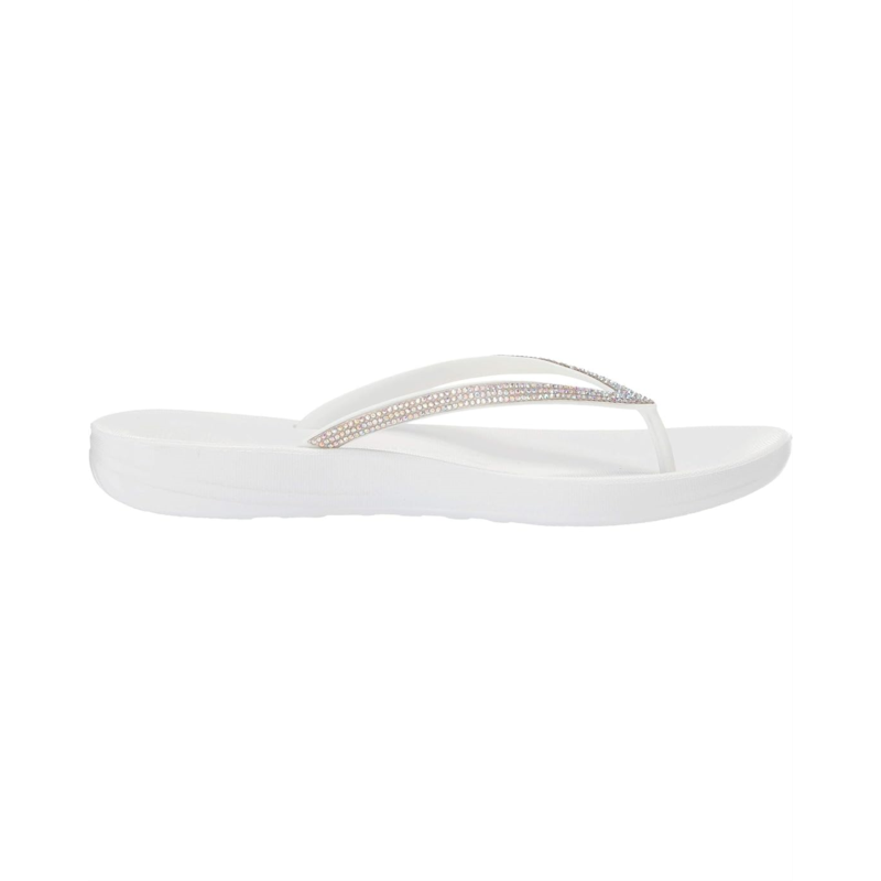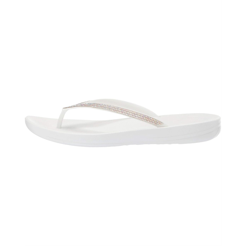 - FitFlops comfort-engineered, surfer-girl flip-flops smothered with micro-crystals. From the top, they look like your typical surfer-girl flip-flops. Underneath, theyre engineered with FitFlops featherlight, pressure-diffusing iQushion midsole tech. Made of high-rebound air-foam that retains its cushioning, with heel and ball-of-foot impact pillows, and a contoured footbed for natural support when you walk. Anatomically shaped straps hold the sandals to you, to help stop toes gripping. This version adorned with sparkling micro-crystals, throw a pair in your suitcase and youll find yourself wearing them to beach, bar and beyond. Waterproof and slip-resistant.