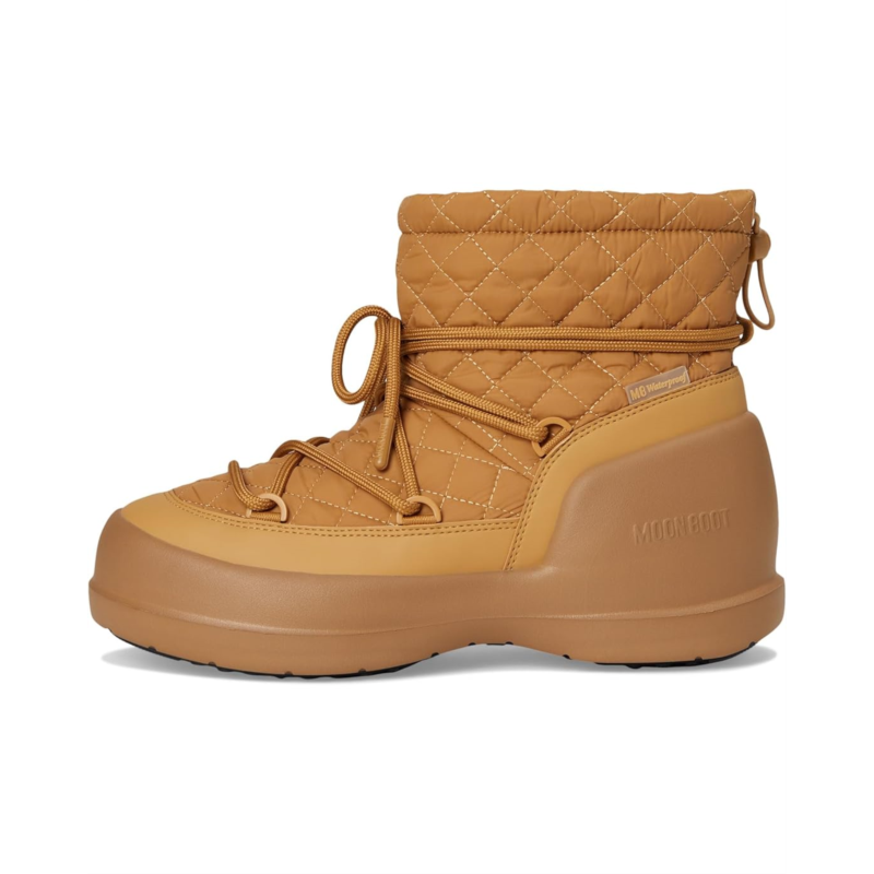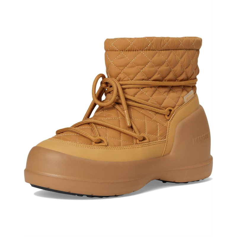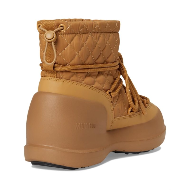 - The MOON BOOT Mezzaluna Quilted Mid WP redefines cold-weather footwear with a sleek update to the beloved Luna silhouette. Designed as a refined evolution, Mezzaluna delivers a more structured, modern feel while keeping comfort at its core. Crafted with a durable polyester upper, lining, and insole, this boot wraps your feet in lightweight warmth and cushioned ease. The fully waterproof construction keeps rain, snow, and slush out, so your style stays effortless no matter the forecast. An ankle-high profile with a closed toe offers everyday versatility, while the pull-on design makes getting ready fast and fuss-free. Underfoot, the rubber outsole provides reliable traction for confident steps on slick city streets or winter getaways.