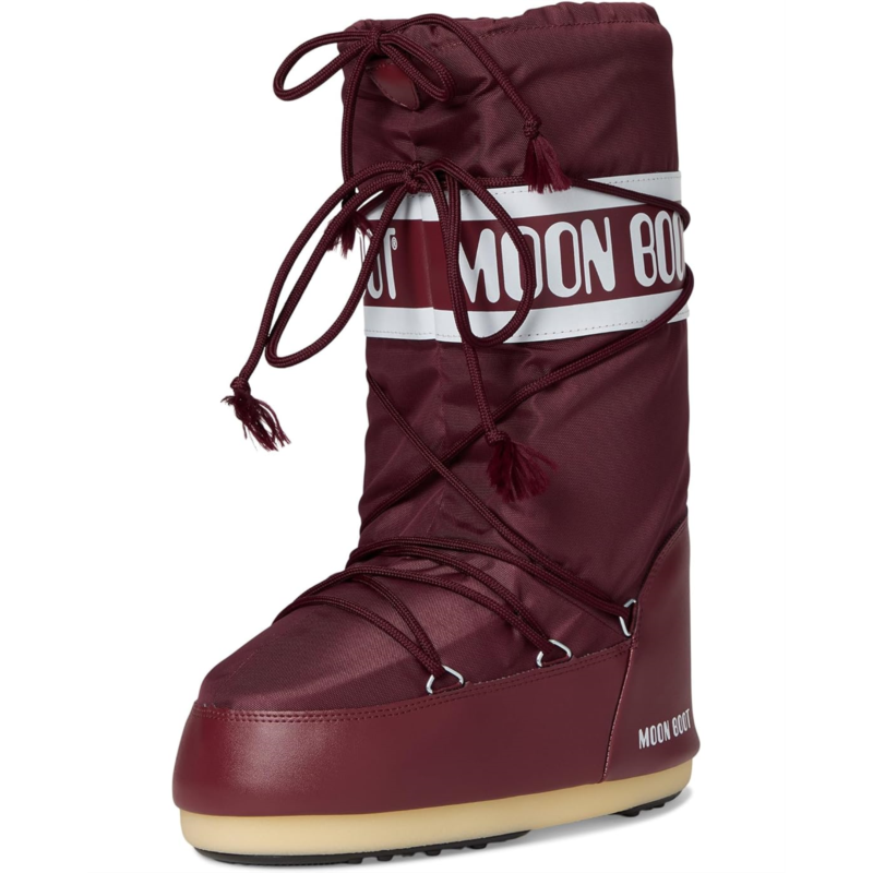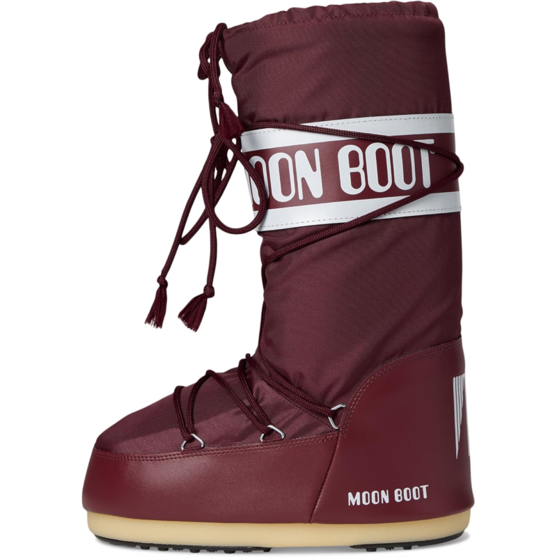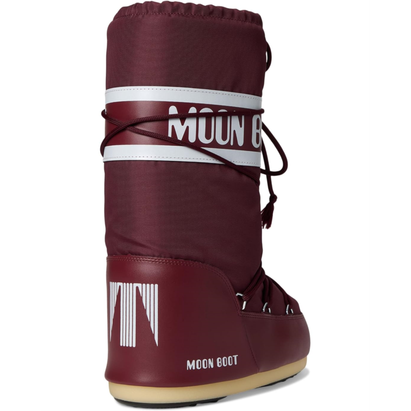 - The MOON BOOT Icon Nylon brings legendary style back to Earth with a bold, retro-futuristic silhouette inspired by the 1969 lunar landing. Crafted with a durable nylon upper, cozy polyester lining, and a cushy foam insole, this mid-calf masterpiece delivers warmth, comfort, and unmistakable space-age vibes. Its easy pull-on design and closed-toe construction make every step feel effortless, while the sturdy rubber outsole, equipped with astronaut-inspired suction pads, provides unbeatable traction and true ground control on any surface. Insulated for cold-weather adventures and engineered with a lightweight midsole, the Icon pays homage to the gear that walked on the moon.