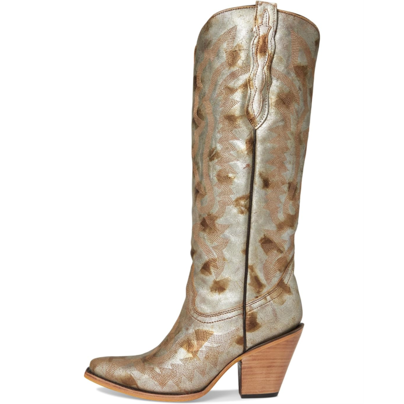 - The Corral Boots Z5223 are heeled boots with a gold metallised leather & embroidery tall top and a pointed toe design. These knee-high boots are made of a leather upper, insole, and lining. Their side pull handles offer easy on and off.