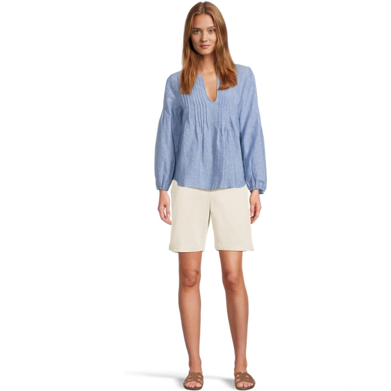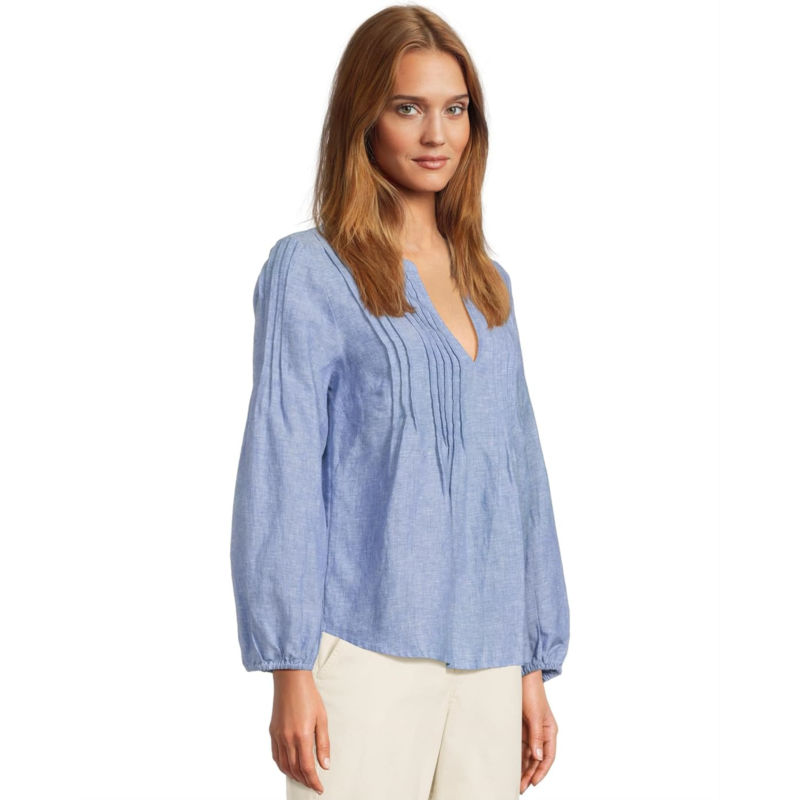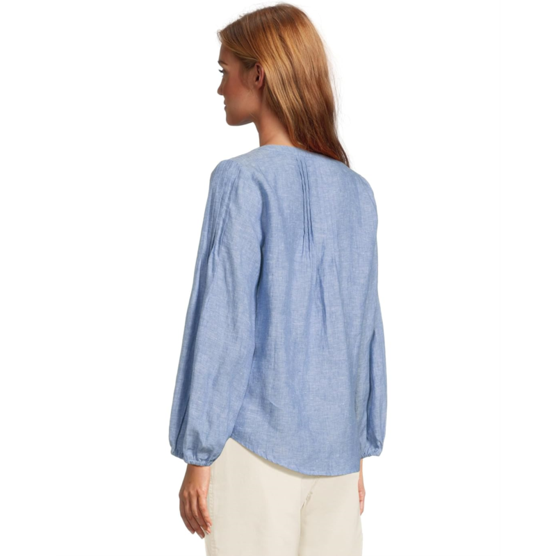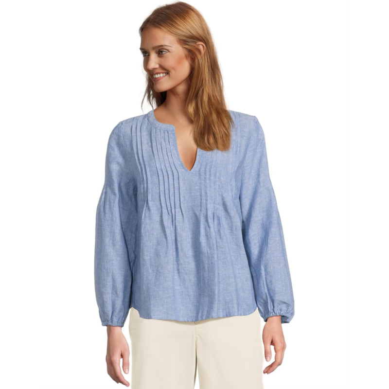 Look glam and don''t give a damn wearing the Tommy Bahama Coastalina Pintuck Peasant Top. This top features chic notched neckline, long balloon sleeves, pintucks detailing on the front and sleeves, regular fit, and pull-on style.
