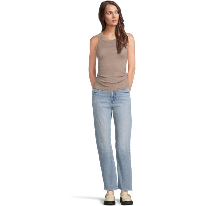 Move around with ease by wearing the Michael Stars Ella Crop Tank. The stylish top has a scoop neckline with a sleeveless style and a straight hemline. It also has ruched detail on the sides.
