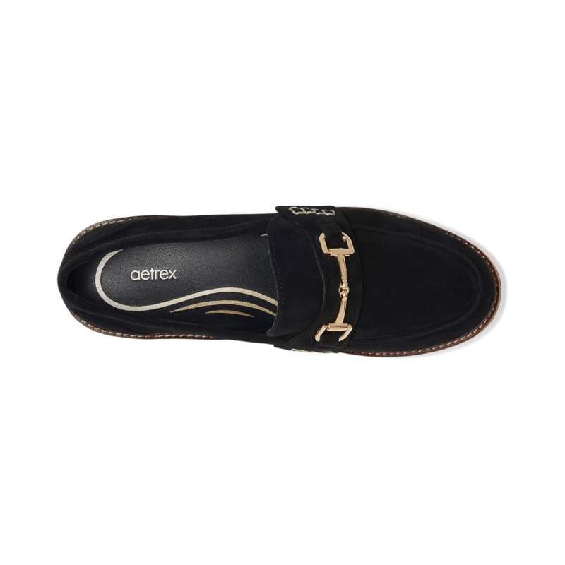 The Aetrex Collette Loafers redefine style and functionality. The Aetrex Orthotic System is Built-In to every pair features arch support that helps to stabilize your body, align your feet and relieve common foot pain. Plus, the leather upper, fabric lining, and ethylene vinyl acetate insole add to the comfort. The hook-and-loop top strap allows easy adjustability and the block heel elevates the style.