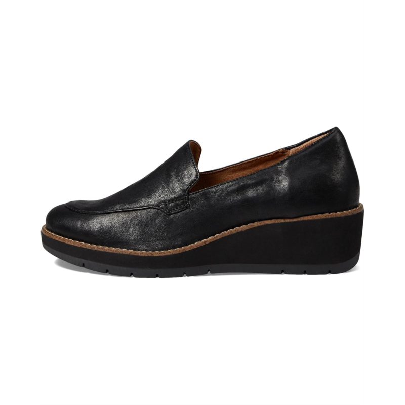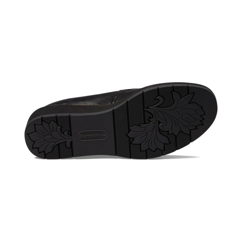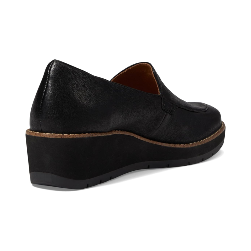 Let your steps move unstoppable in new comfort by wearing Comfortiva Farland loafers. The rounded-toe with slip-on style makes it easy to wear. The loafers feature leather upper, microfiber lining, and insole. A wedge platform heel with lining all-around makes it eye-catchy.