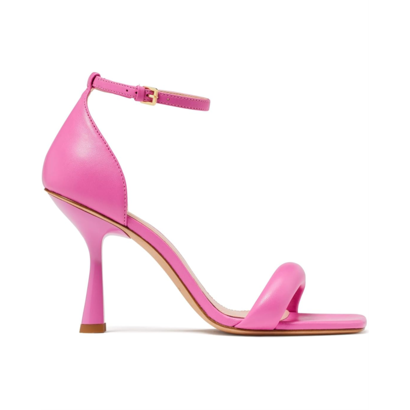 Give your look an elevated touch of style and bring out the fashionista in yourself wearing Kate Spade New York Melrose Sandals that come with a modern sleek silhouette and a stiletto heel. The heels feature a leather upper with rubber floral accent, leather lining, and padded leather insole.