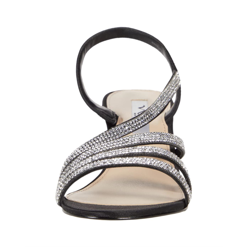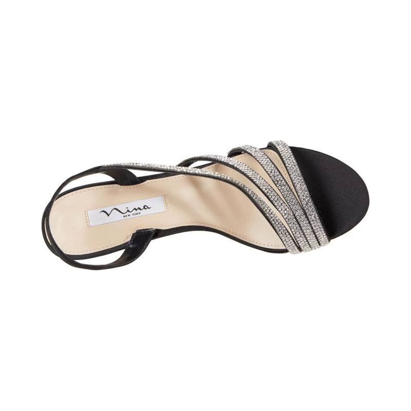 Make a sparkly statement at any special occasion with the Nina Noura, a strappy slingback sandal featuring satin and rhinestone-encrusted straps.
