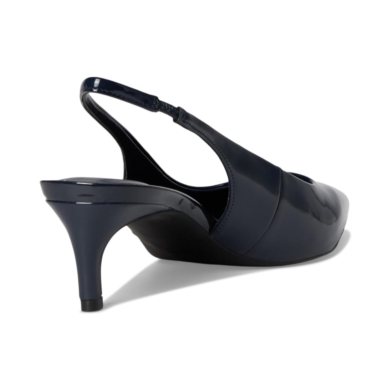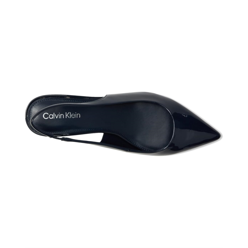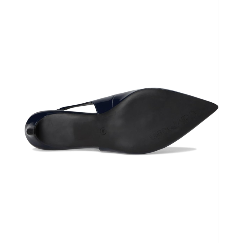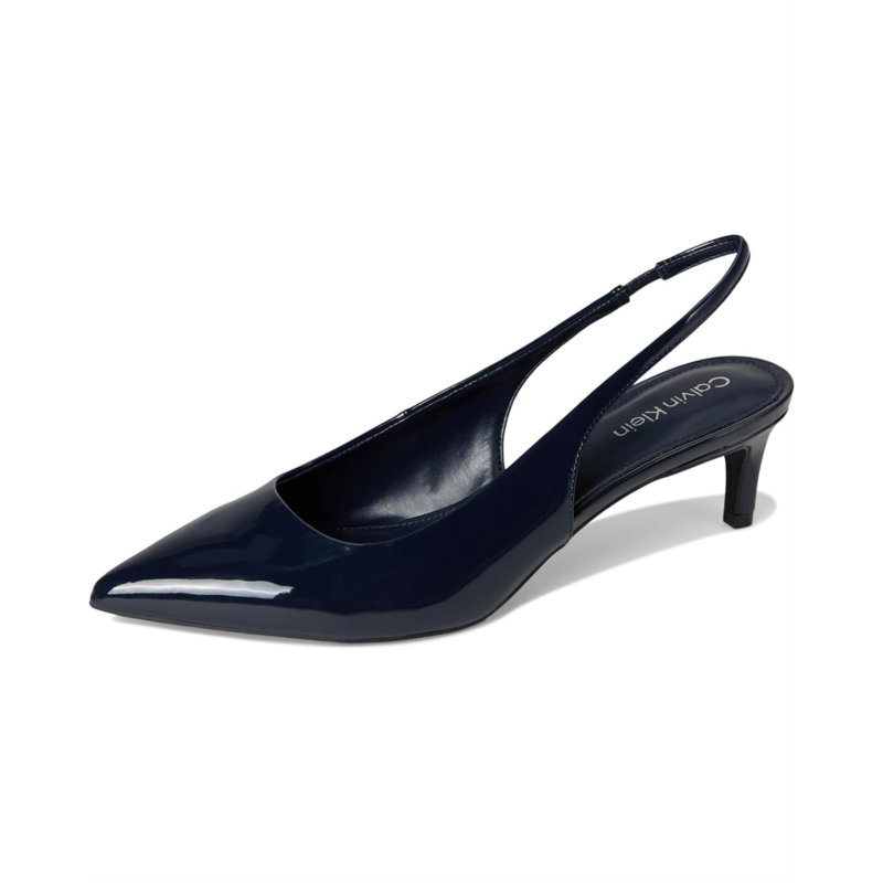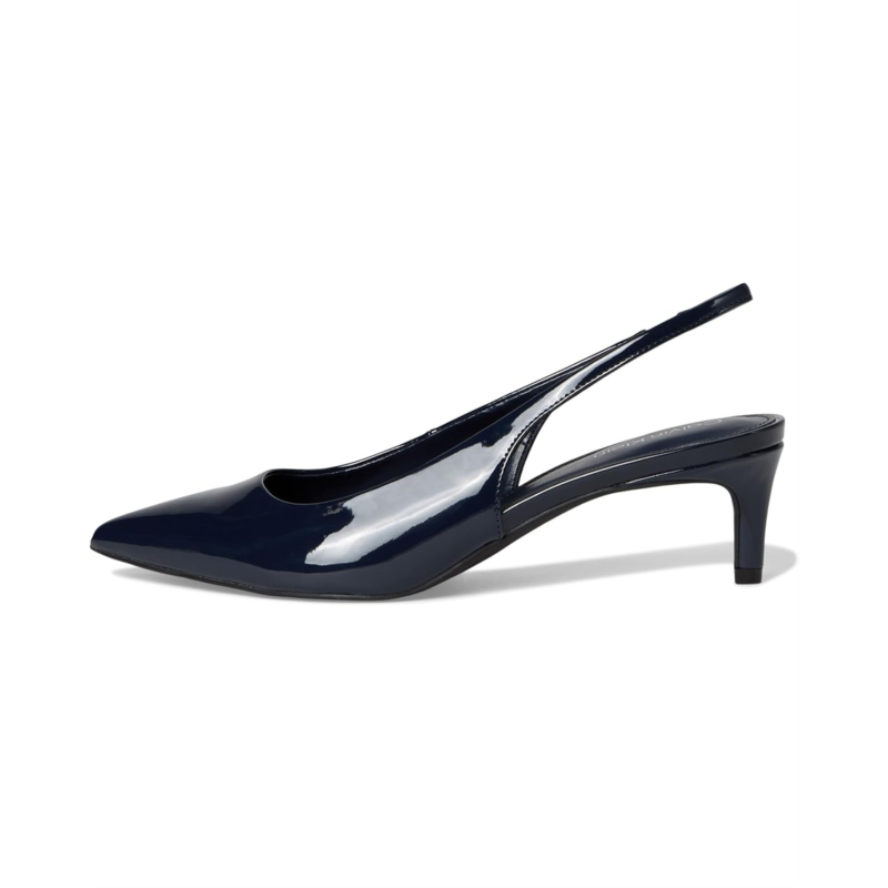 Be ready to jealous your friends at the party by wearing the stylish and trendy Calvin Klein Dainty heels. These kitten heels are designed with pointed toe design, elasticized slingback strap closure, and faux patent leather upper.