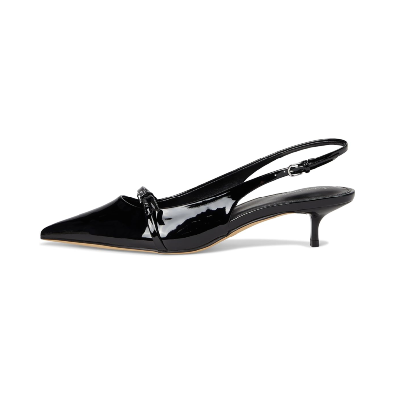 Sleek sophistication meets modern glamor in the Calvin Klein Simira. Designed for women who want polish with comfort, this dress pump blends timeless elegance with everyday wearability. Crafted with a smooth PU upper and a soft manmade lining, it ensures a luxe feel while staying lightweight. The adjustable slingback buckle strap provides a secure, personalized fit, while the pointed toe and chic kitten heel elevate your look with subtle confidence. A cushioned EVA outsole delivers all-day comfort without sacrificing style, making these heels perfect for workdays, nights out, or special occasions.