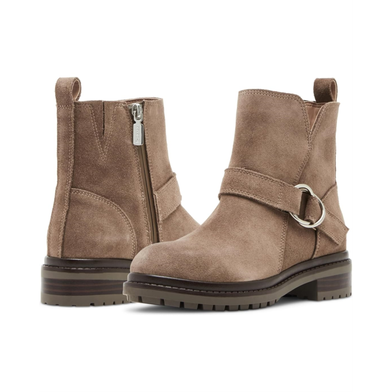 - Bring comfort to your feet and keep them dry wearing the Blondo Renae Waterproof Boots. The pull-on style boots have a round-toe design with side zip closure for easy on/off and an ankle pull-tab that makes donning and doffing easy. The double-buckle detail with slight block heel elevates the overall look. The leather upper with synthetic lining and polyurethane footbed of the ankle-high boots add comfort to your feet