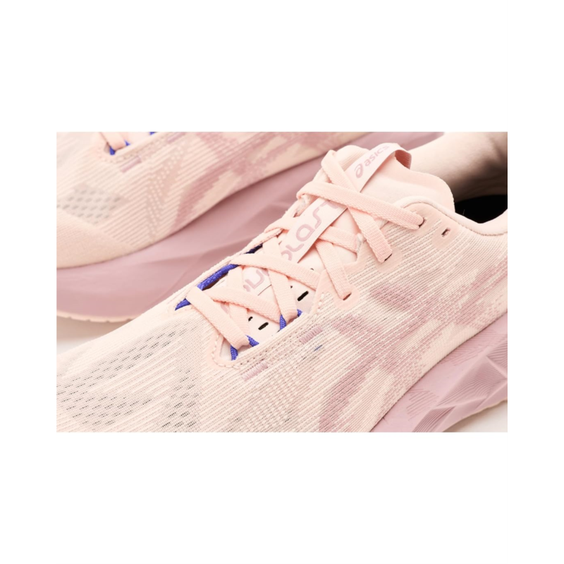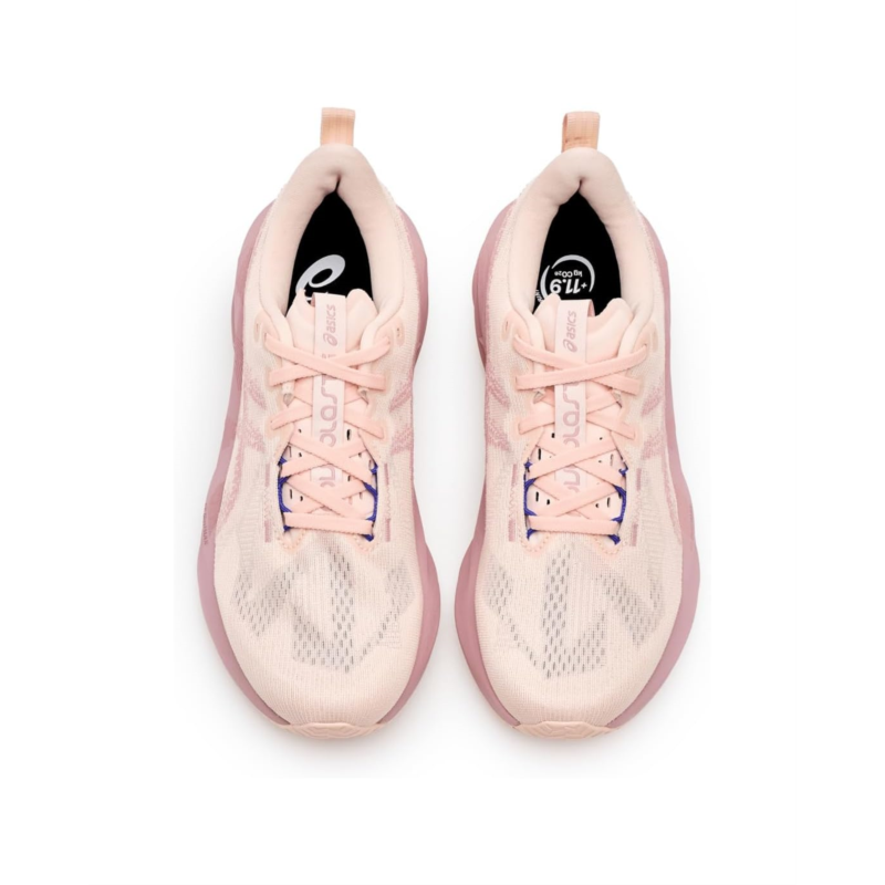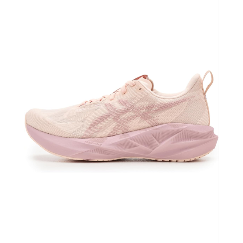 - The ASICS Novablast 5 shoes midsole and outsole geometry help produce an energized ride. Their tongue wing construction in the polyester upper helps improve the fit while reducing tongue movement. These running shoes are made of a rubber insole and polyester lining. At least 75% of the shoes main upper material is made with recycled materials to reduce waste and carbon emissions while the sockliner is produced with the solution dyeing process that reduces water usage by approximately 33% and carbon emissions by approximately 45% compared to the conventional dyeing technology. The FF BLAST MAX cushioning helps create softer landings and more energized toe-off during your training. These lace-up shoes are complemented with an engineered jacquard upper that offers more stretch, ventilation, and durability.