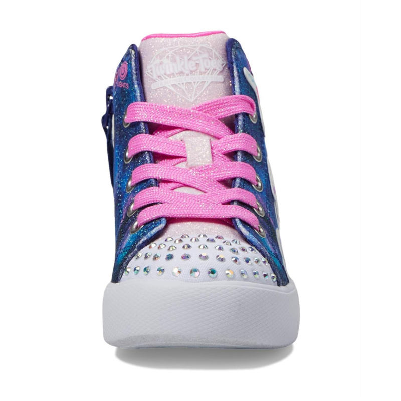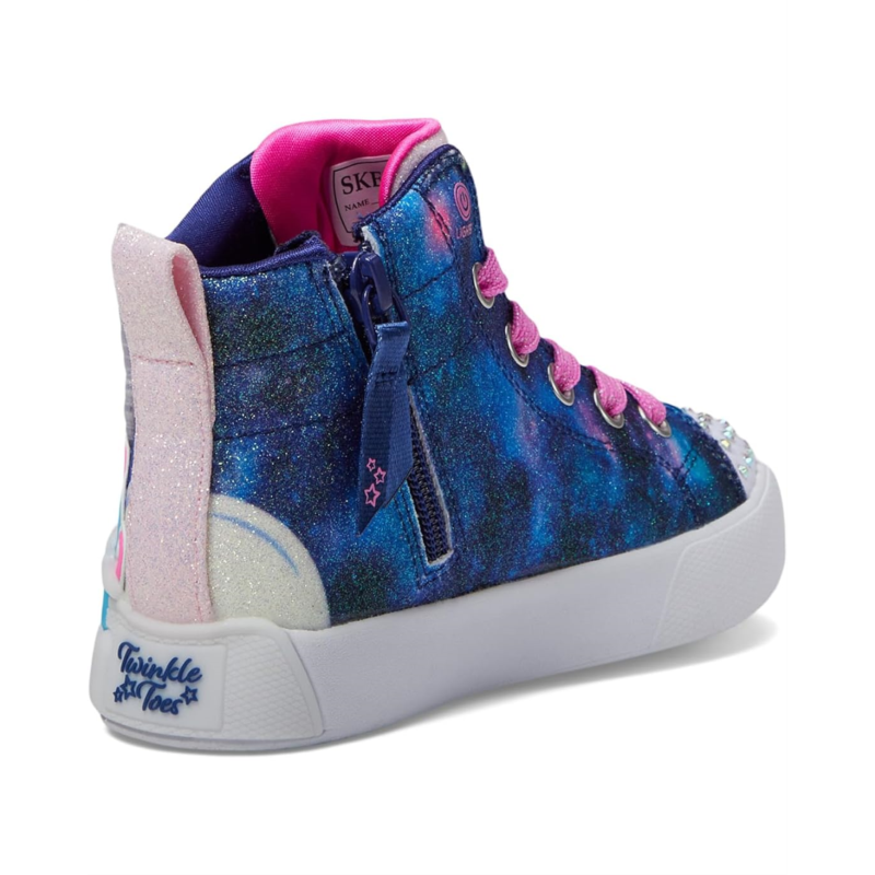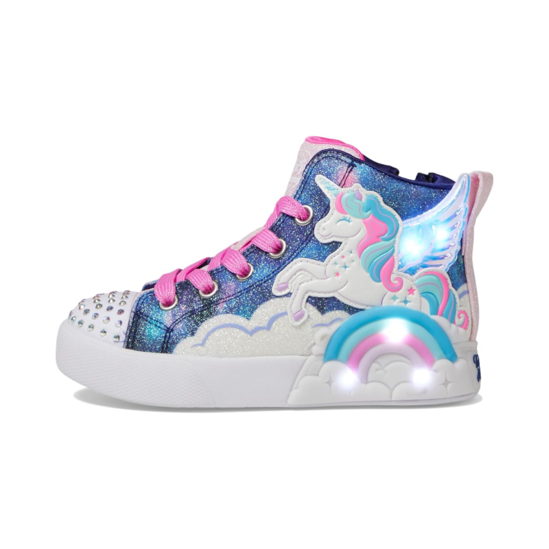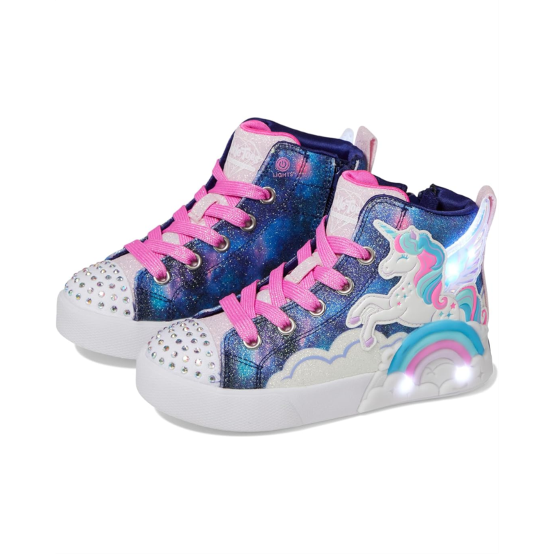 - Dazzle your kids steps with magical fun with the SKECHERS KIDS Twinkle Magic shoes. These lighted high-top sneakers feature a glitter finish canvas upper with a flying unicorn and clouds side graphic and a rhinestone embellished toe cap. The cushioned comfort EVA insole and nylon lining offer all-day comfort. These high-top shoes come with a zippered side closure for easy on and off. Colorful and cushioned, add an eye-catching appeal to your kids outfits with these lace-up sneakers.