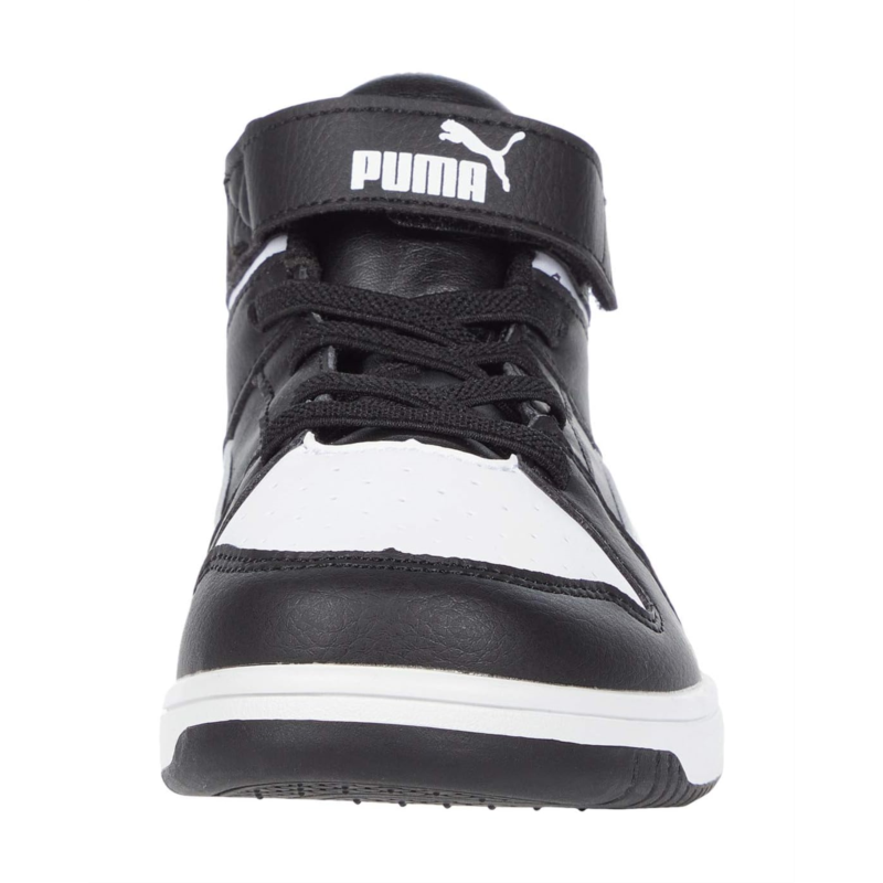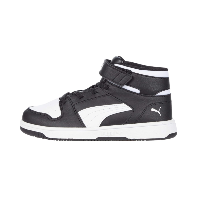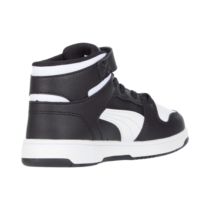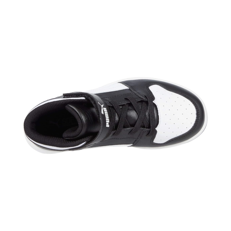 - Give them a classic PUMA Kids style wearing the faux-leather Rebound Layup Synthetic Leather Hook and Loop high-top sneaker with elastic laces!
